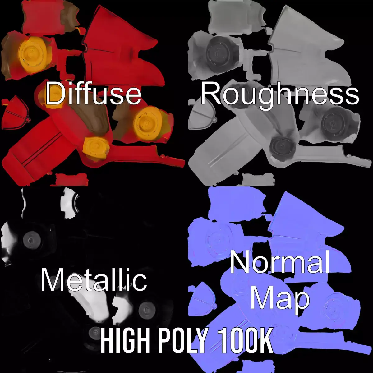 The Vintage Red Racer model pack presents a classic toy car design, perfect for nostalgic scenes or children's media. This model features a streamlined red body with vibrant yellow wheels, emulating a charming retro aesthetic. Each model has 3 levels of detail: low-poly (1000 triangles for mobile), middle-poly (10,000 triangles for environment), and high-poly (100,000 triangles), which allows for the use of this model in production rendering (such as 3ds Max, Maya, Cinema 4D, Blender, Vray/Corona/Cycles and all others), game engines (Unity and Unreal compatible), and interactive presentations, providing a choice of detail based on the LOD System principle. Ideal for use in historical animations, toy commercials, or vintage-themed projects. The model's textures are PBR, Diffuse, NormalMap, and reflection/roughness/metallic, suitable for any modern rendering engine. All models are accurately unwrapped and have no overlapping UVs. Textures are 4096*4096 in size. If you enjoy the model, please like and leave a comment.