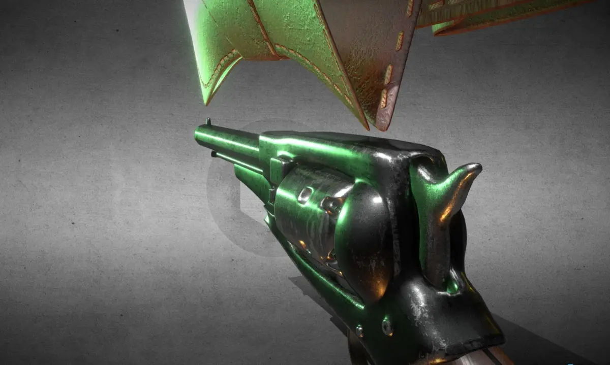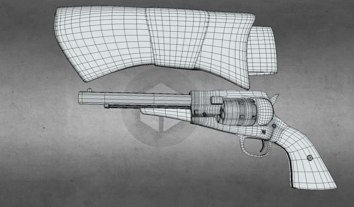 Inspired by the 1858 remington new army model, this is a single-action, six-shot, percussion revolver. Includes a leather holster model with its own textures. Perfect for your cowboy/sheriff/army man! Made in blender.