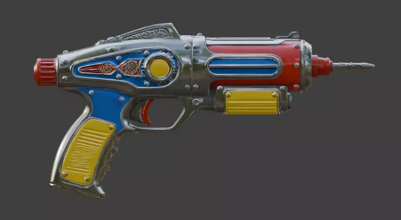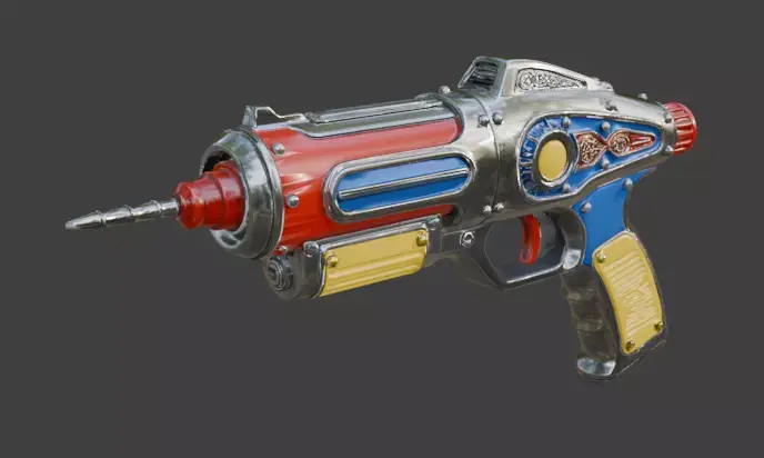 TagsAtompunkRaygunBlaster3DModelRetroSciFiChromeWeaponPBRGameReadyUnityUnrealLowPoly4KFuturisticVintagePropIndustrialSpaceCosmic