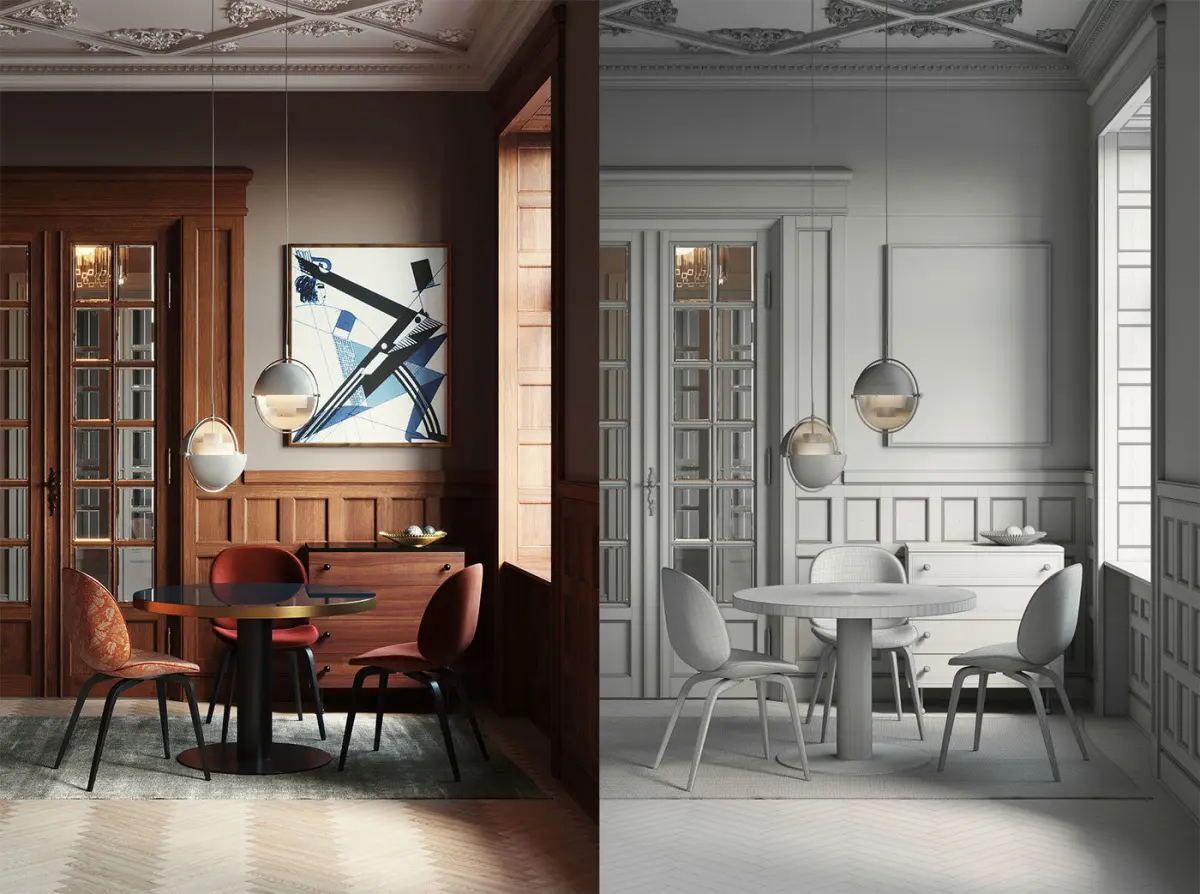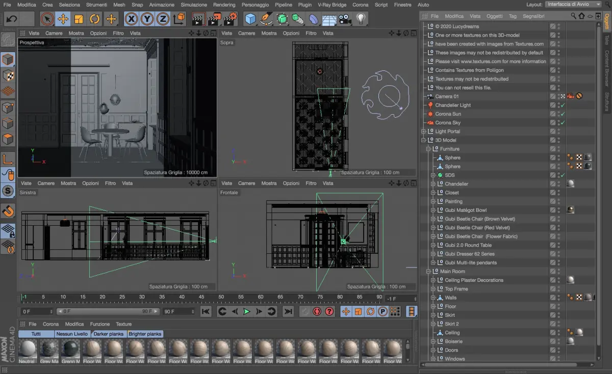 This is a fully textured interior scene with natural light setup, ready to render with CINEMA 4D + CORONA, inspired by a GUBI’s catalogue original photo. Inside the zip file you'll find 82 materials, 46 textures up to 4k resolution, Skylight setup, camera settings, Corona render settings and VFB settings. Including OBJ, FBX and 3DS model export files. The render needs no post-production.