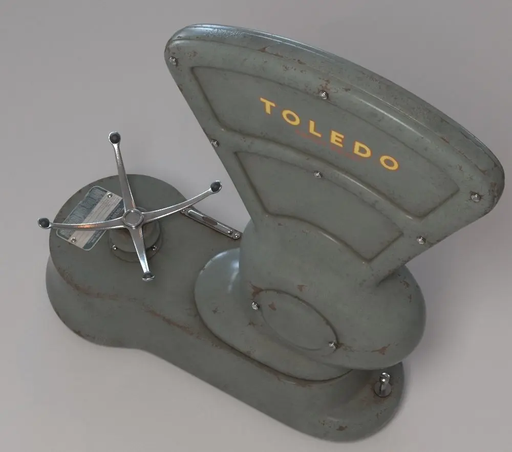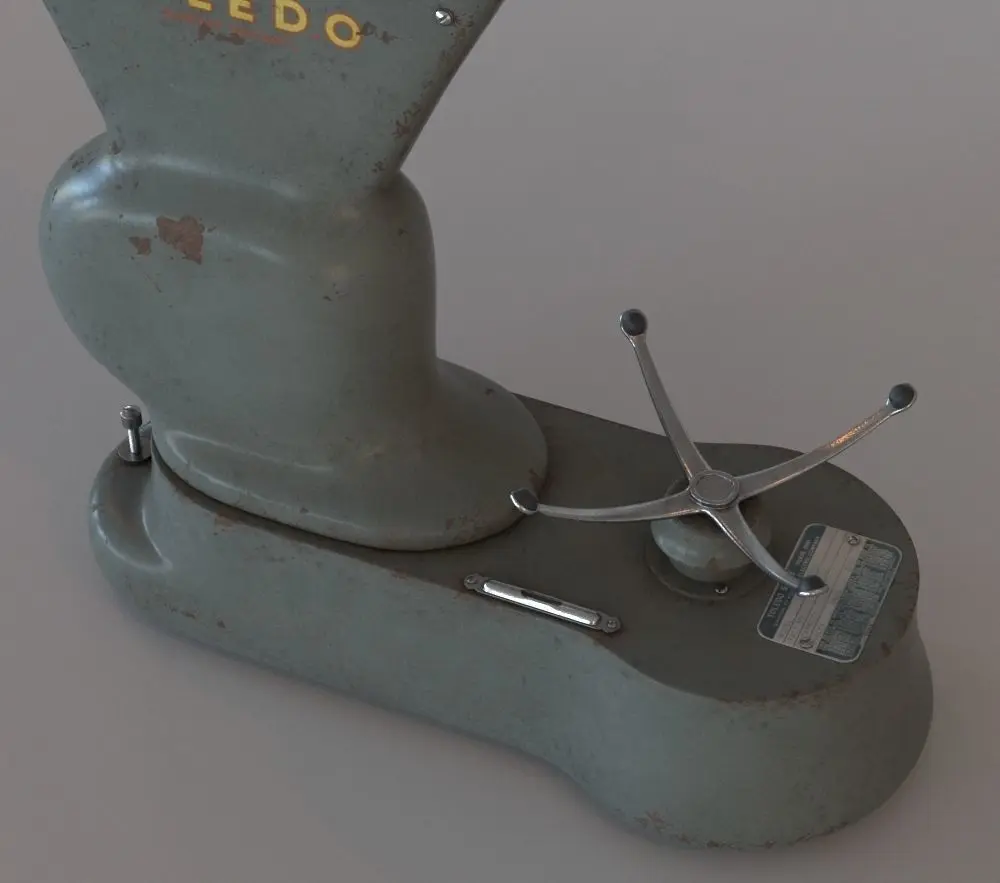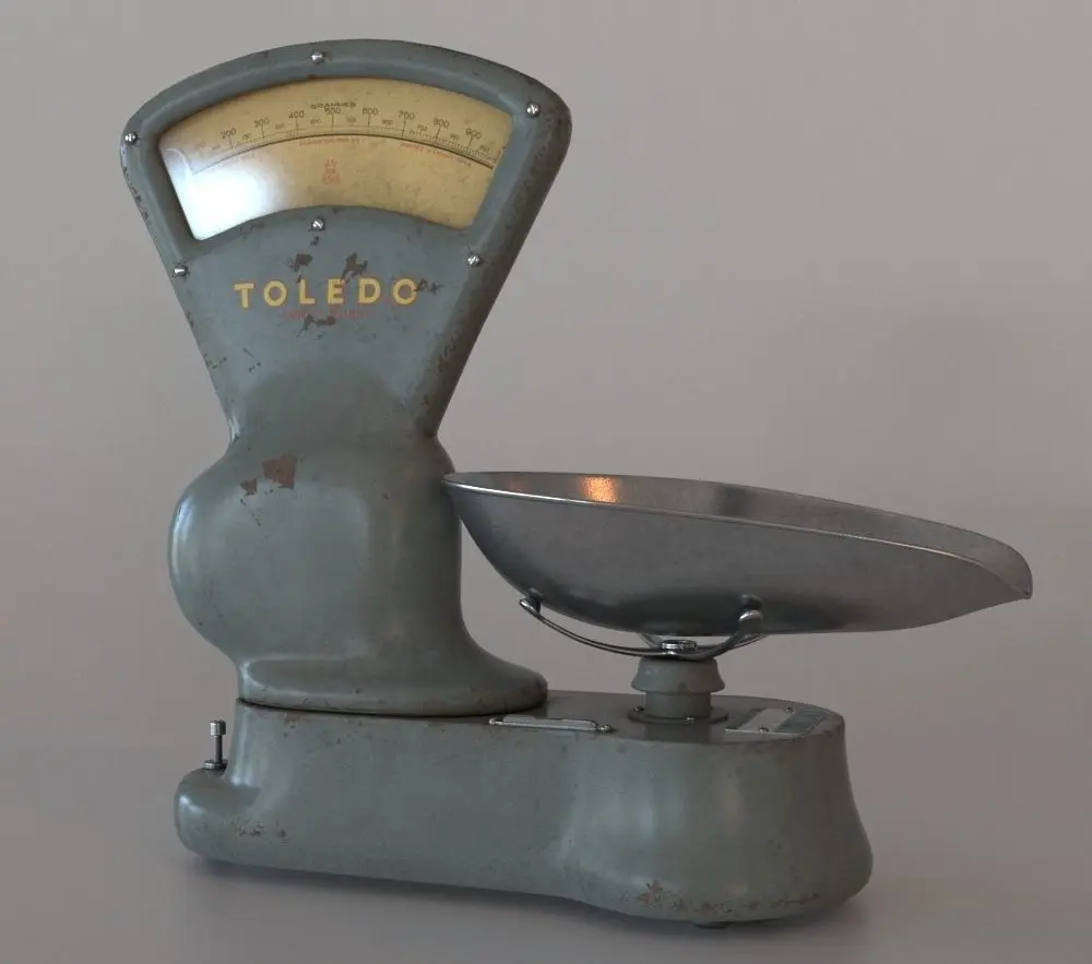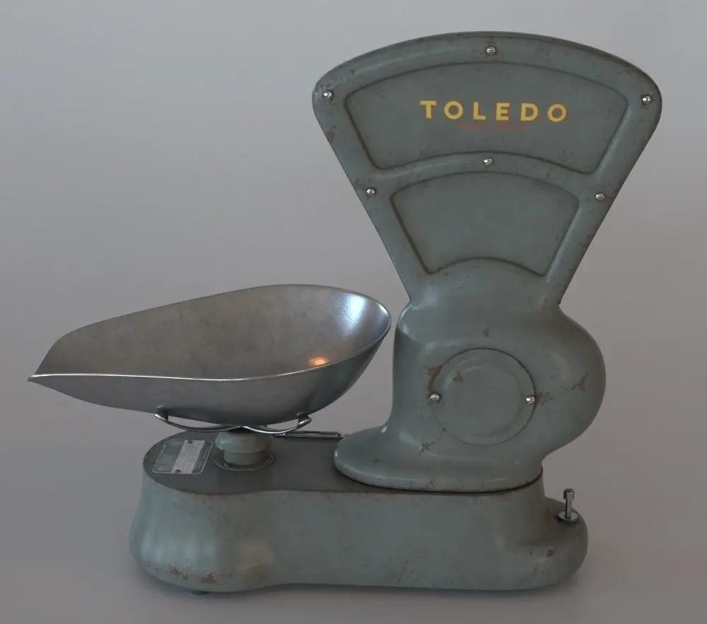 This is an old scale for food shops, painted in green and quite rusted.