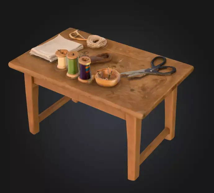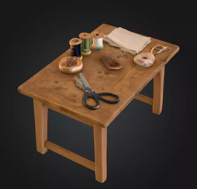The Vintage Sewing Table is a finely detailed 3D model that captures the charm and practicality of a classic crafting workspace. Constructed from weathered wood with visible grain and subtle imperfections, the table exudes a rustic, handmade quality that makes it perfect for historical interiors, fantasy settings, or vintage-inspired environments.