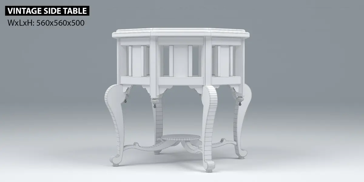 Vintage Side Table inspired by Asia traditional furniture.Real-World Scale.No 3rd party plug-ins are required to use the file.