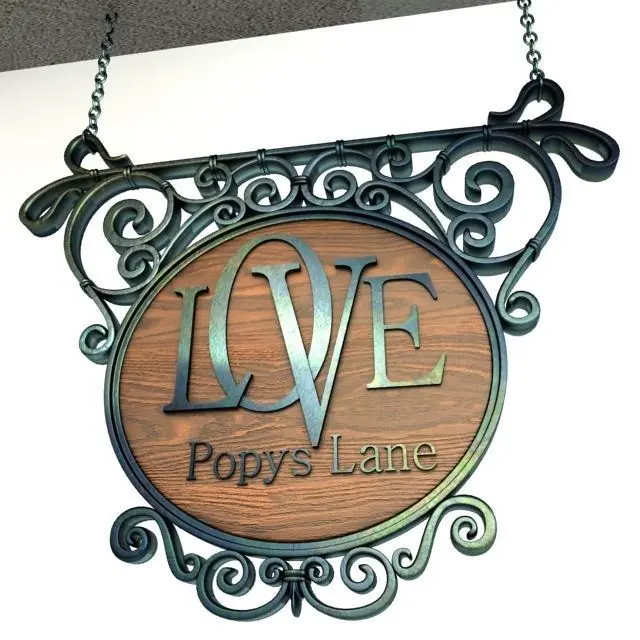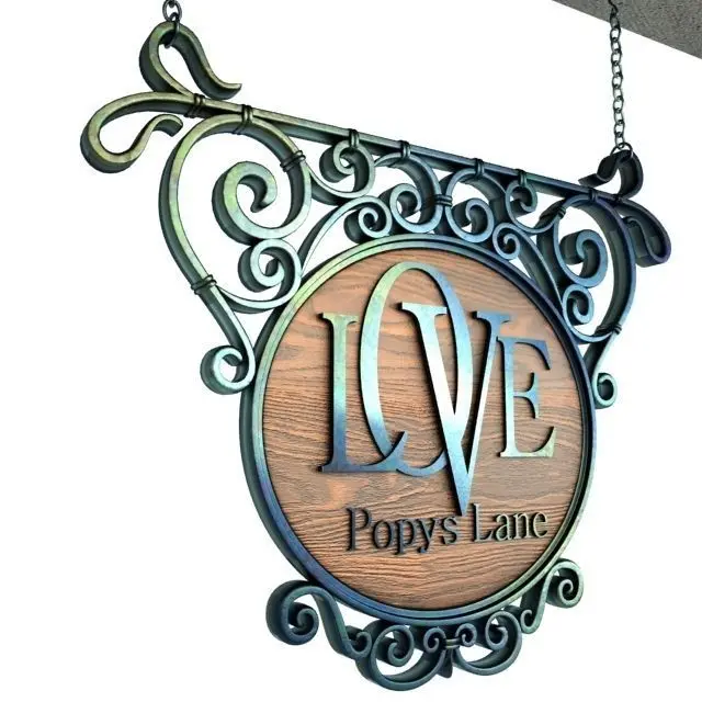Wrought iron signage,vintage style , architectural ornament for shop front or front door gate welcome.