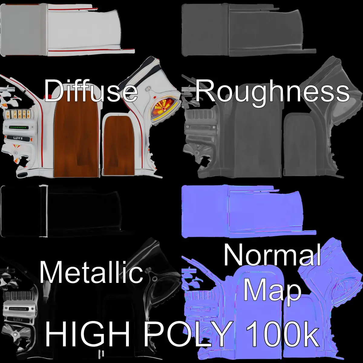 This Vintage Slot Machine 3D Model Pack offers three levels of detail: low-poly for mobile applications, middle-poly for environmental use, and high-poly for production rendering. It's ideal for use in casino-themed games, historical animations, or interactive presentations. With PBR textures including Diffuse, NormalMap, Reflective, Roughness/Metallic, it is compatible with modern rendering engines and game engines like Unity and Unreal. Textures are 4096x4096, providing high-resolution detail. All models are precisely unwrapped with no overlapping UVs, ensuring quality and ease of use. The first image is the reference used for creating the 3D model. It is important to carefully evaluate the quality of the model by examining the preview images that display the topology and polygonal mesh. These previews (WIRE and WEB 3D Preview) clearly demonstrate how accurately the model matches the original reference and how well the geometry has been executed. Like and comment if you enjoyed this model pack!