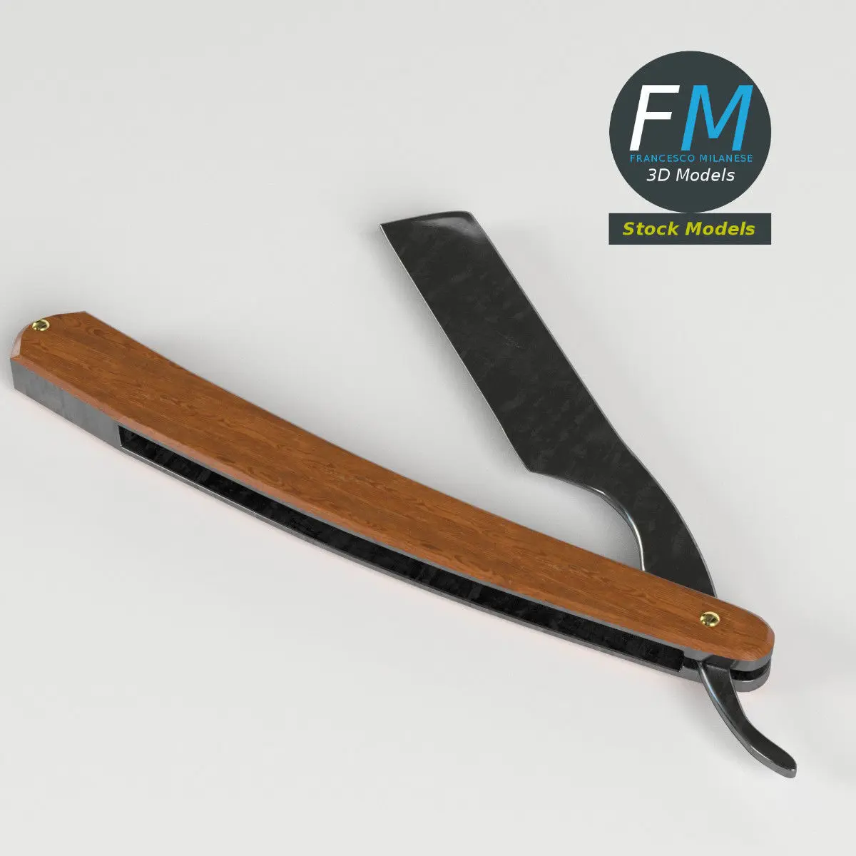 Vintage straight razor 3D Model. 2 individual objects (case, razor --- so you can even rotate or animate it), sharing the same non overlapping UV Layout map, Material and PBR Textures set. Production-ready 3D Model, with PBR materials, textures, non overlapping UV Layout map provided in the package.