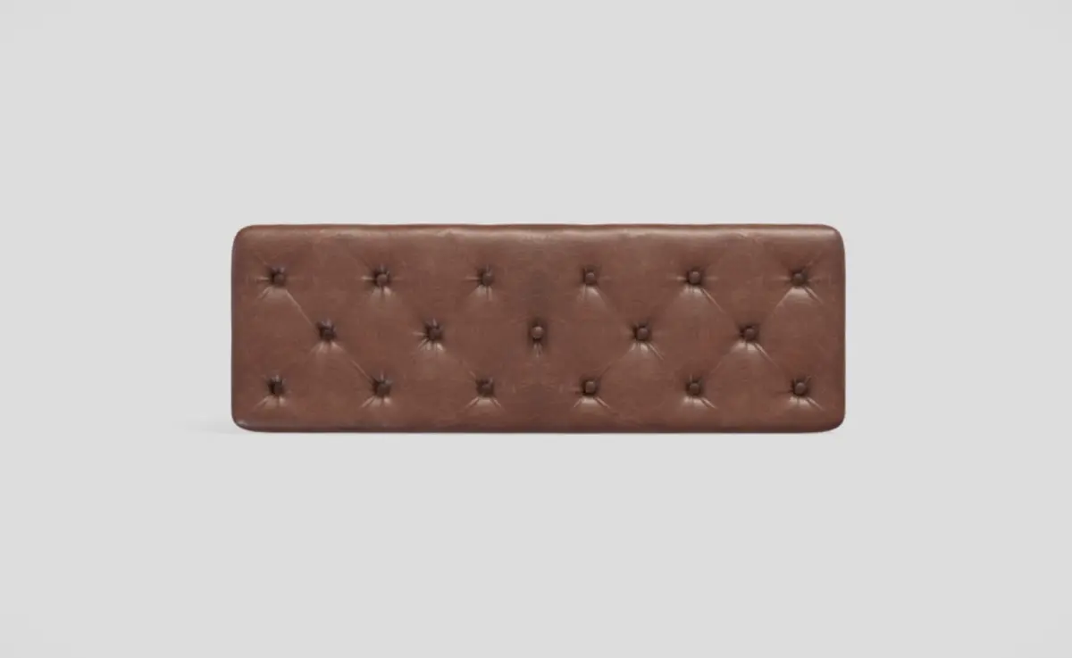 Vintage style tufted bench in brown leather. Fully tufted on all sides including the top seat, except for the bottom.