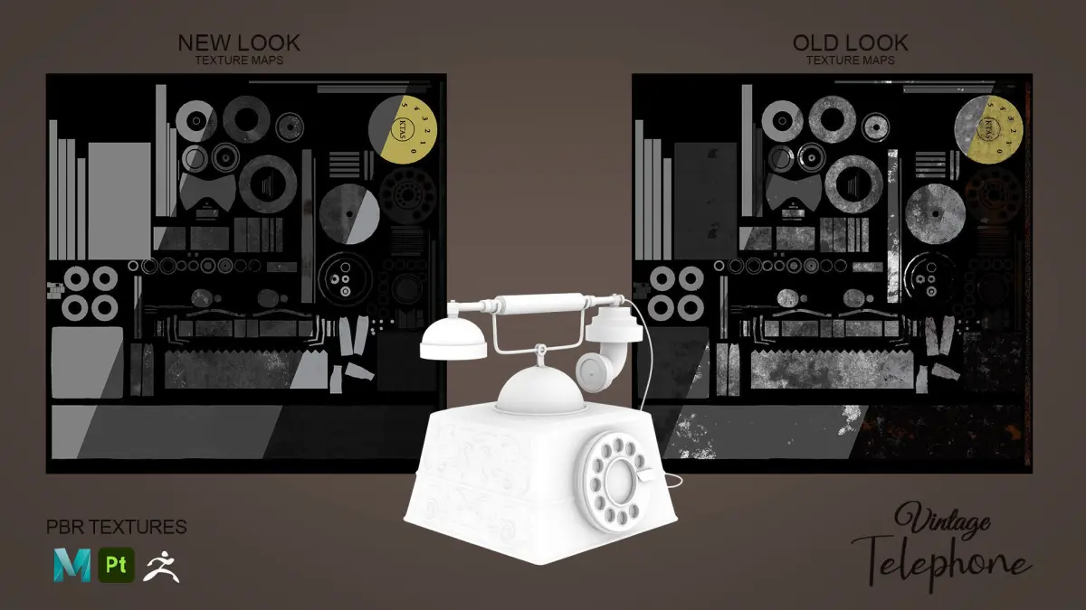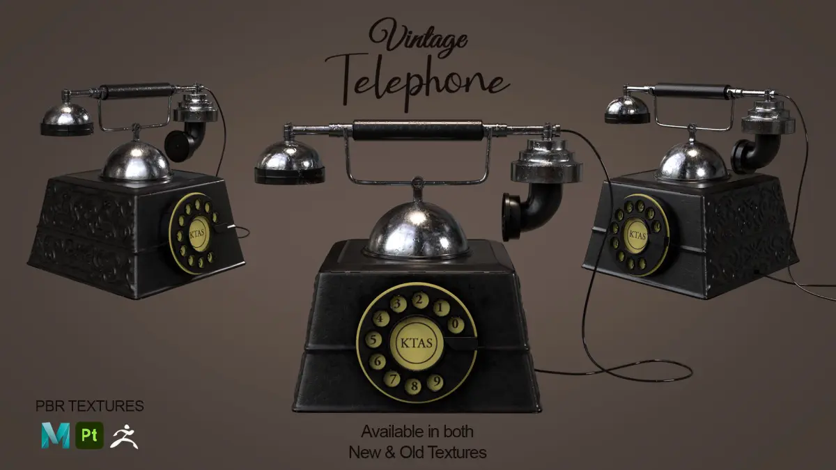 Vintage Highpoly Telephone model done in Maya, Zbrush and textured in Substance Painter inspired from Kjobenhavns TelefonAktieselskab - KTAS