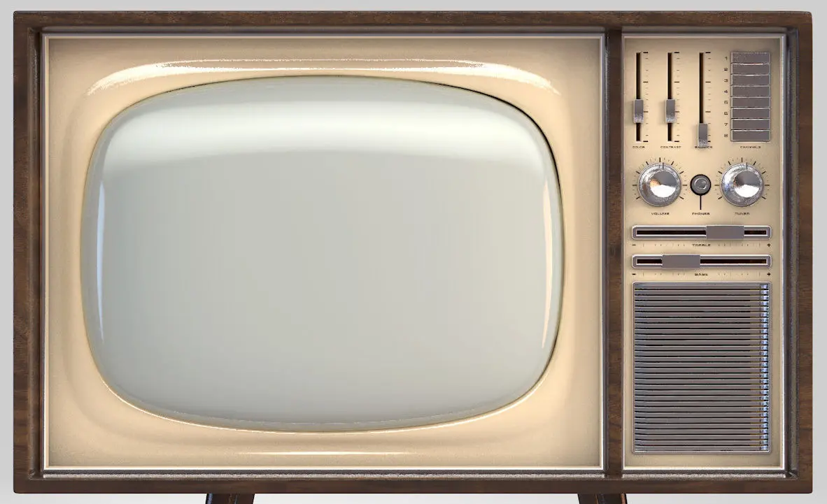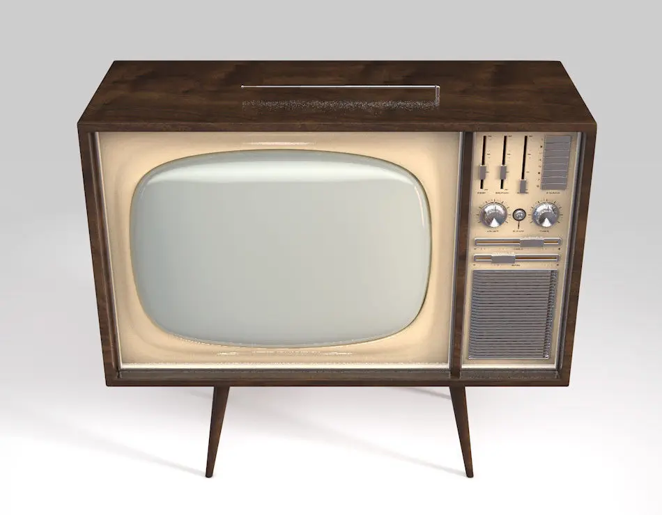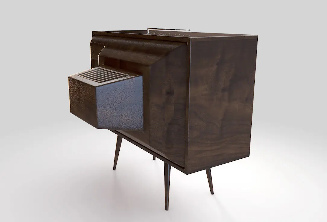 A concept vintage television made from wood, chrome and plastic supposed to be from the 60's
