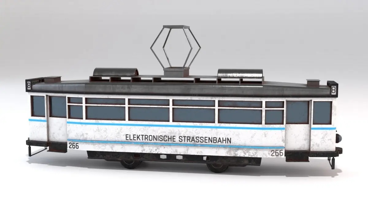 Model of vintage city tram. Based on real pre-war german models. Used for example in Free City of Gdansk. With the model is added set of PBR 4K mettalic-roughness textures made in Substance Painter.