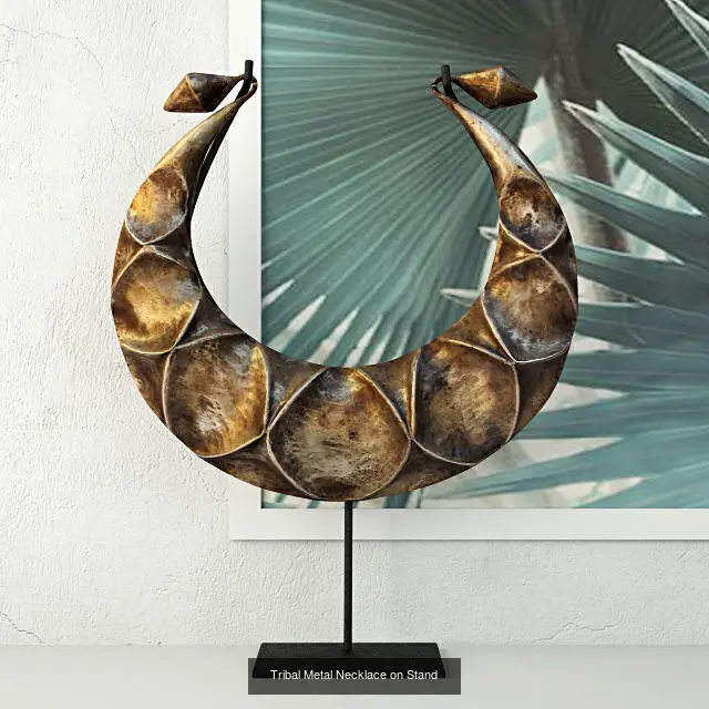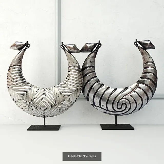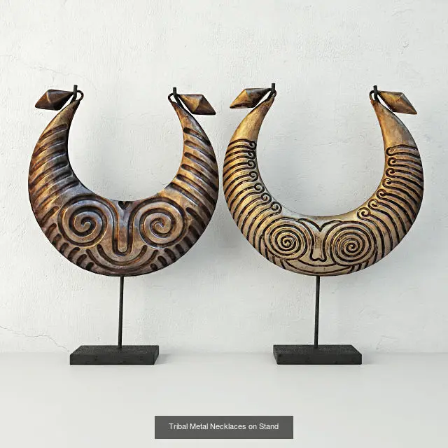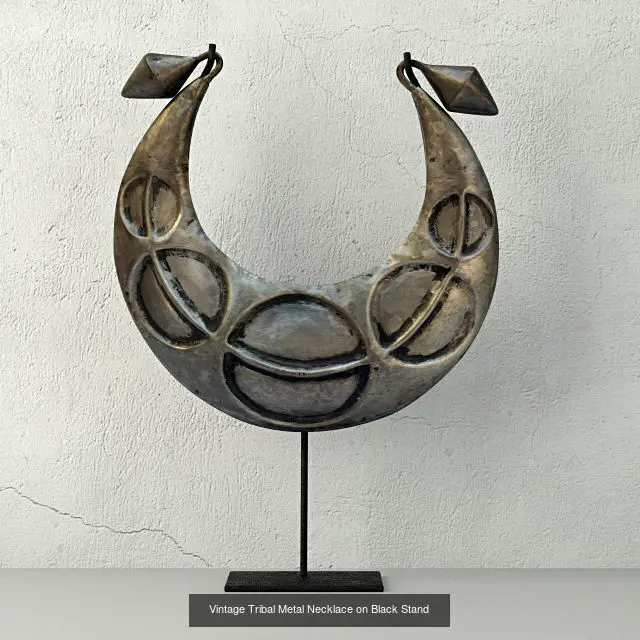 Collection of Vintage Tribal Metal Necklaces on Stand.Archive include: max, fbx, textures.