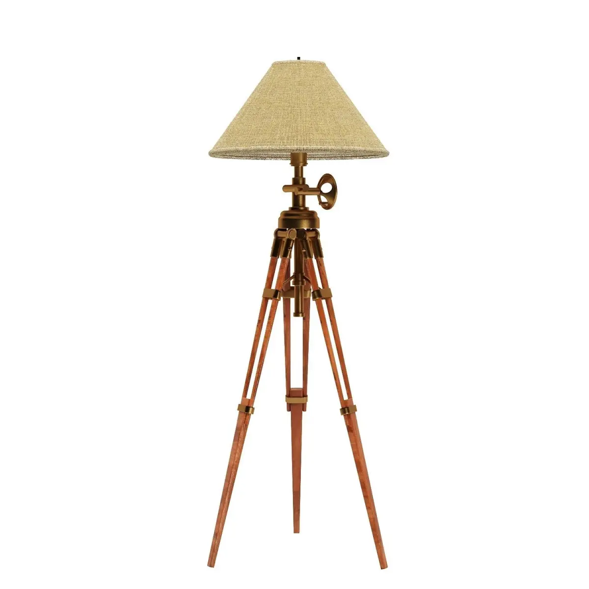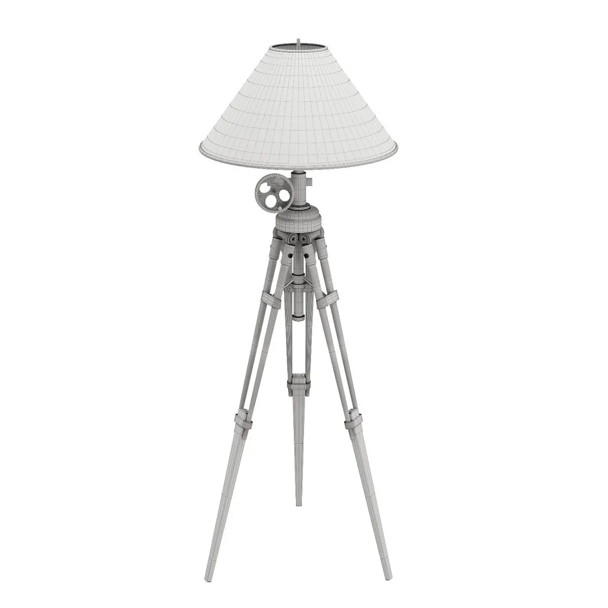 This model is inspired by a Restoration Hardware Royal Marine Tripod Floor Lamp.The lamp is equipped with a telescopic tripod base and a lamp head which can be adjusted up or down.
