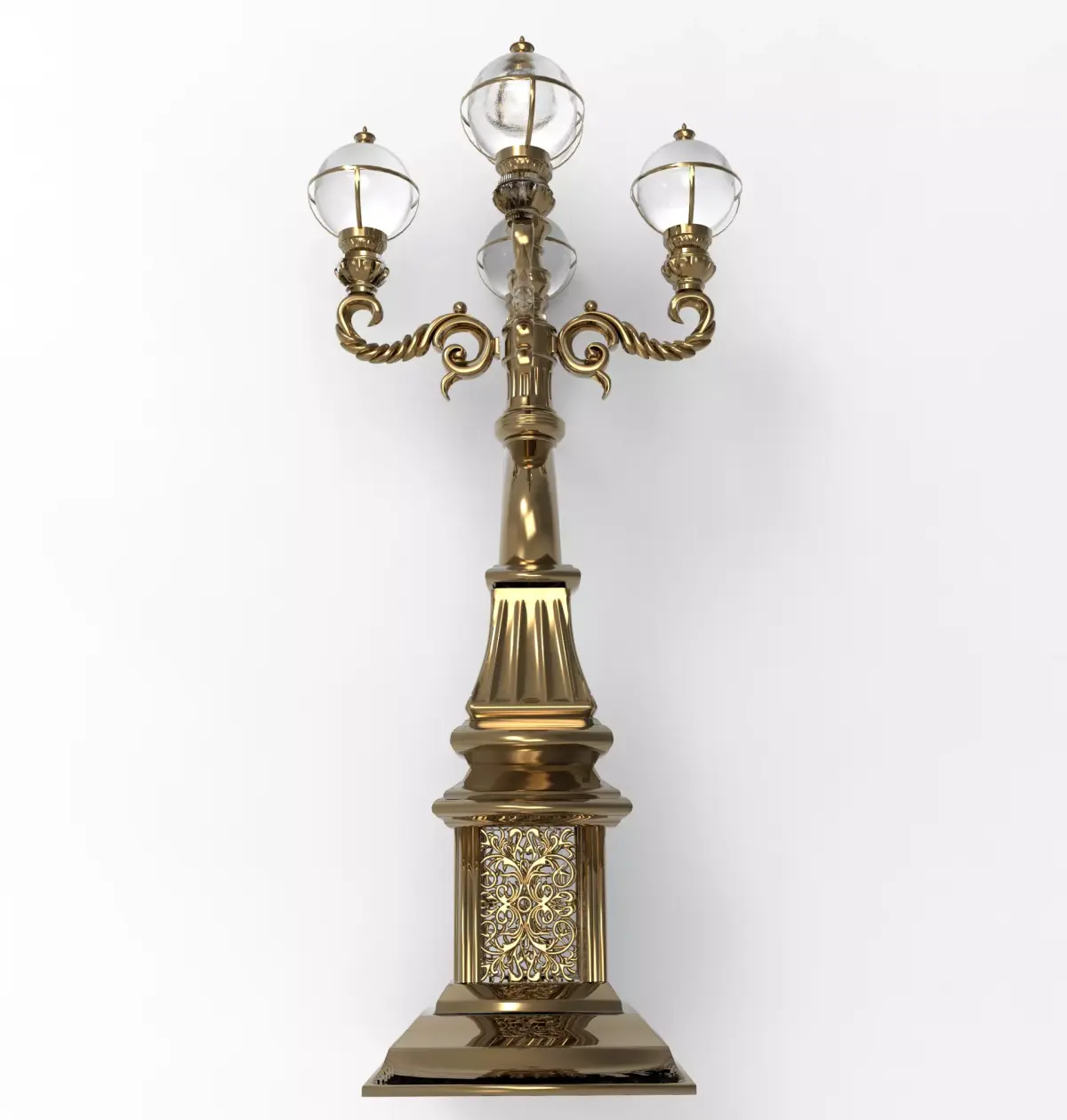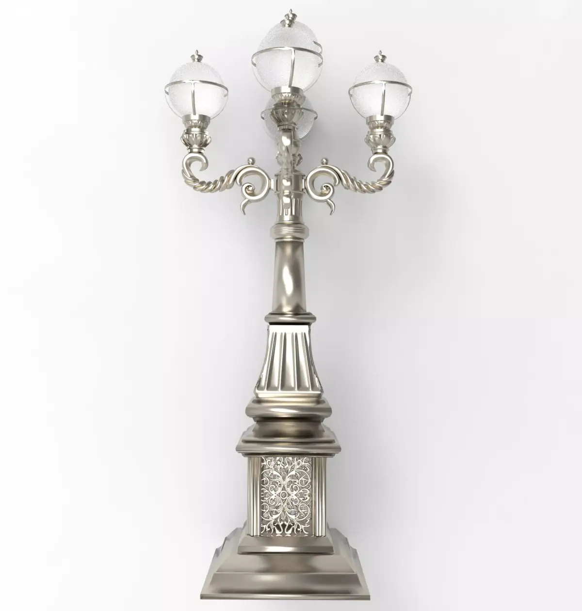 Vintage Victorian Ornate Street Lamp Post 3D Model – Highly Detailed Classic Multi-Globe Lantern