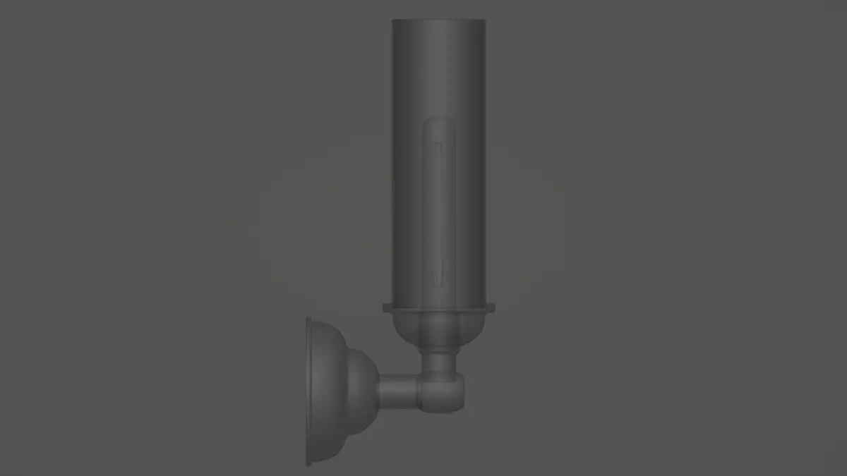 Vintage style wall brass lamp with glass tube shade. Includes long led lamp bulb - industrial style. Perfect for bathroom interior render.