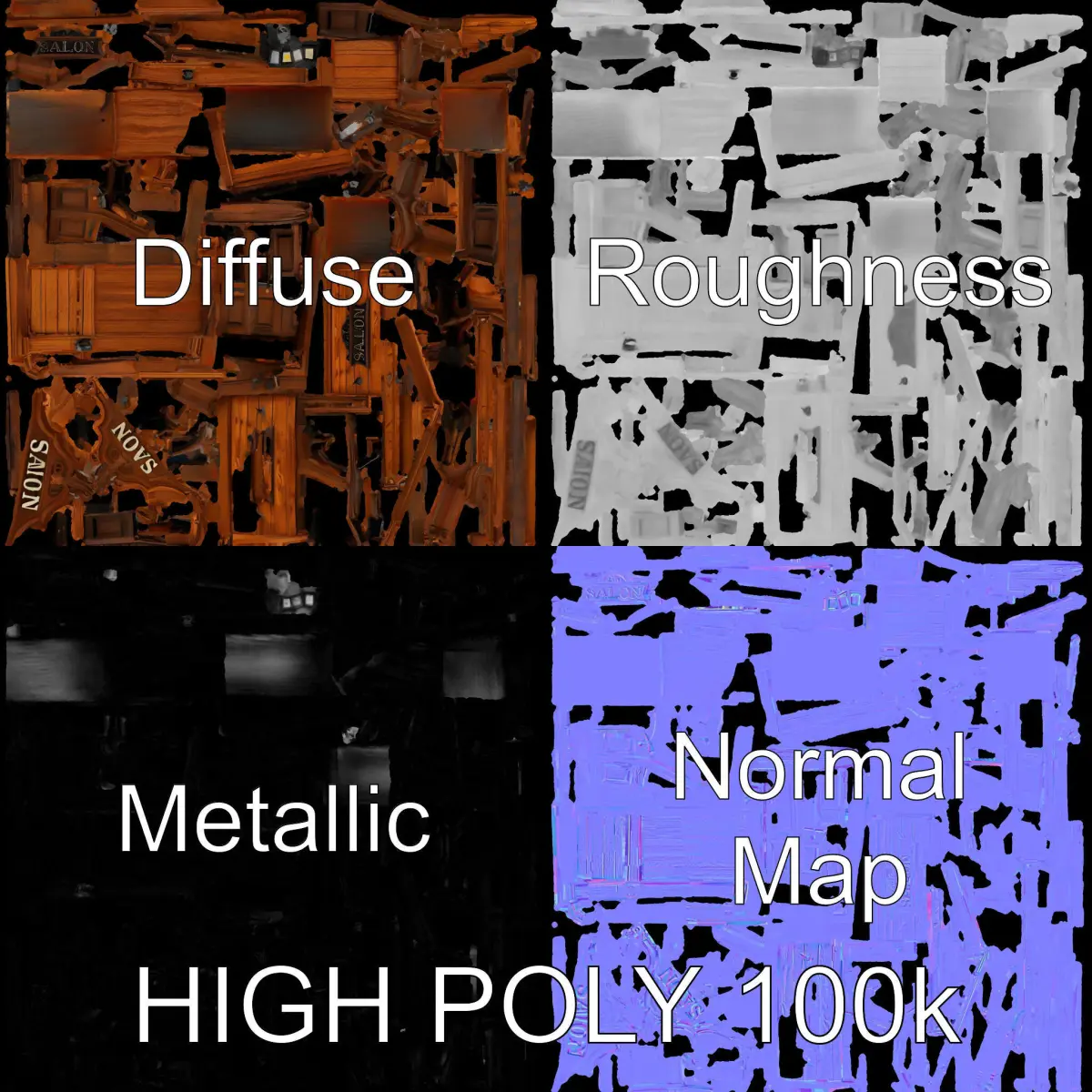 This Vintage Western Salon Facade 3D model pack is meticulously crafted with three levels of detail, offering low-poly (1000 triangles), middle-poly (10,000 triangles), and high-poly (100,000 triangles) variations. Ideal for animations, games, and architectural visualizations, this model set is perfect for creating western-themed environments. Each model is equipped with PBR textures, including Diffuse, NormalMap, and reflection/roughness/metallic maps, ensuring high-quality rendering in any modern engine. Textures are 4096x4096, and the models are accurately unwrapped, with no overlapping UVs. Enhance your projects with this highly detailed asset compatible with 3ds Max, Maya, Cinema4D, Blender, Unity, and Unreal. The first image is the reference used for creating the 3D model. It is important to carefully evaluate the quality of the model by examining the preview images that display the topology and polygonal mesh. These previews (WIRE and WEB 3D Preview) clearly demonstrate how accurately the model matches the original reference and how well the geometry has been executed. If you like this model, please leave a comment and like!
