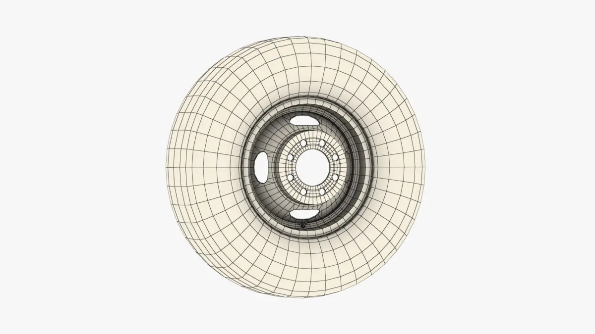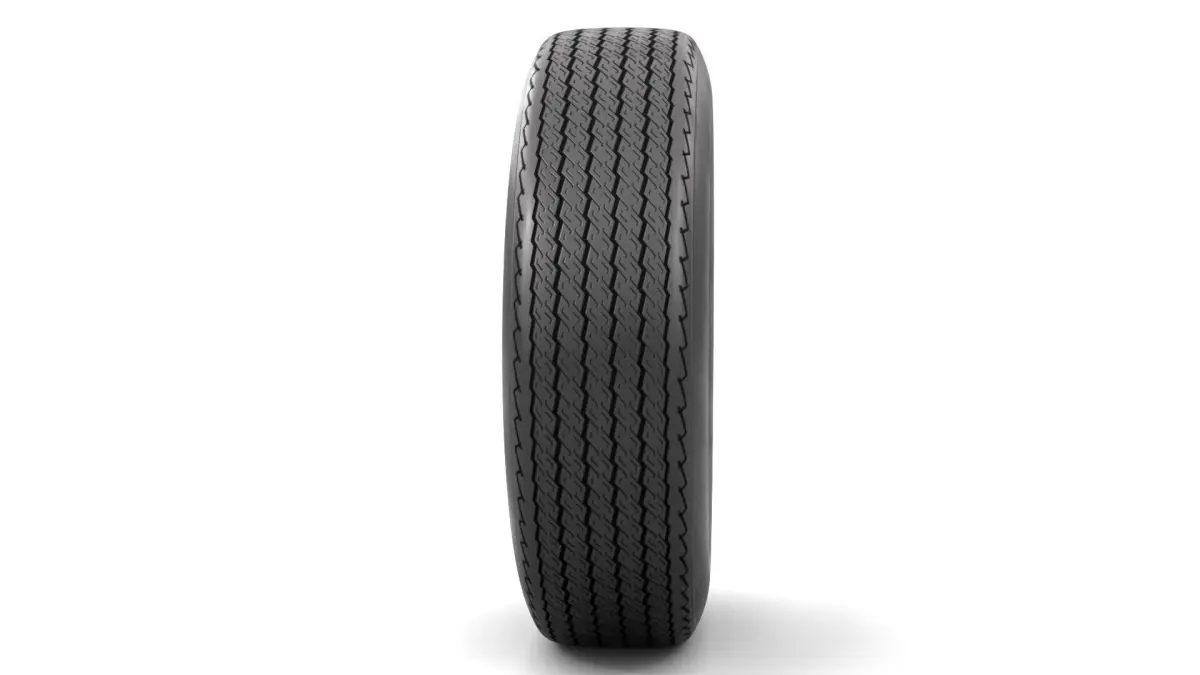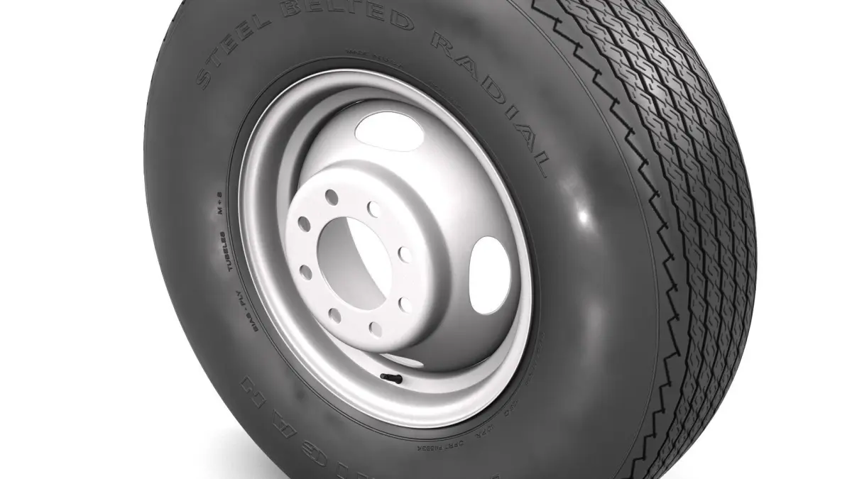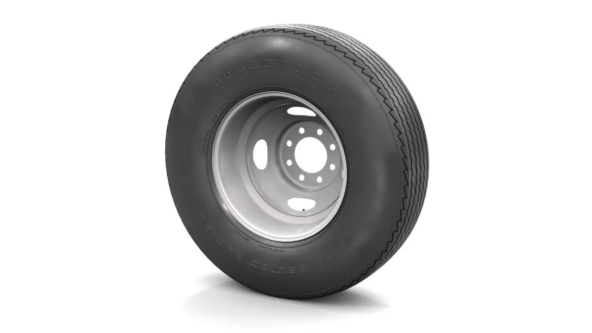 3D model of a wheel and tire set for a vintage dually pickup truck.