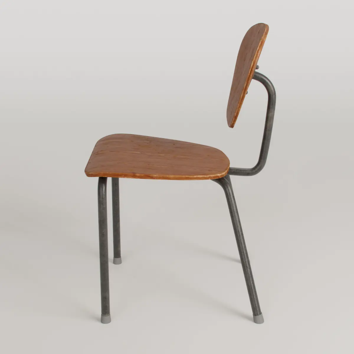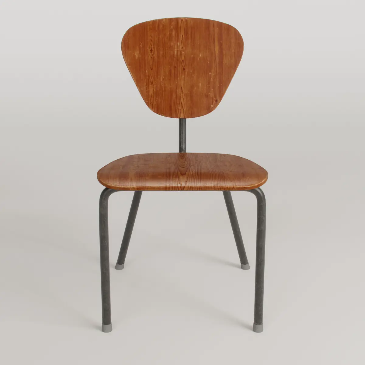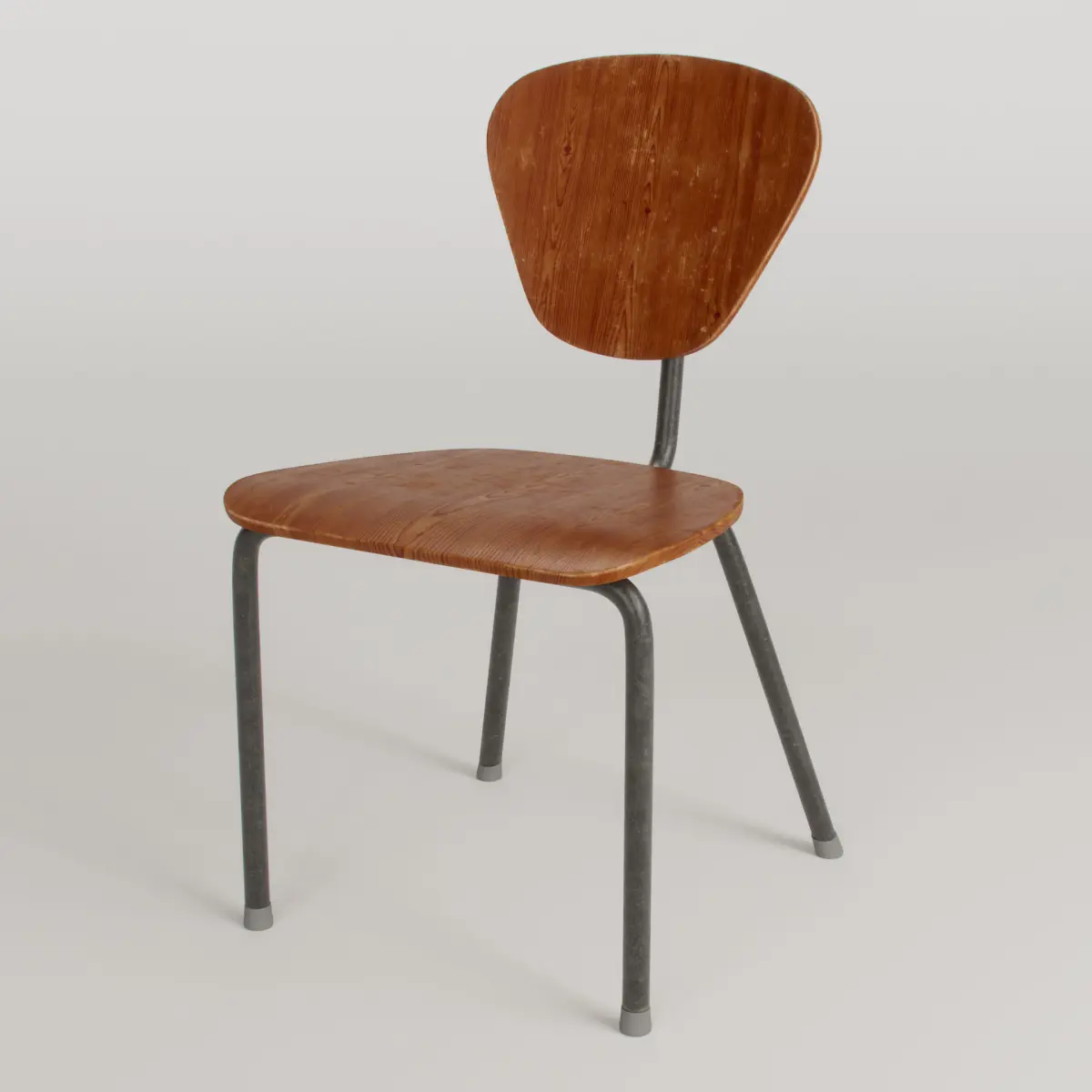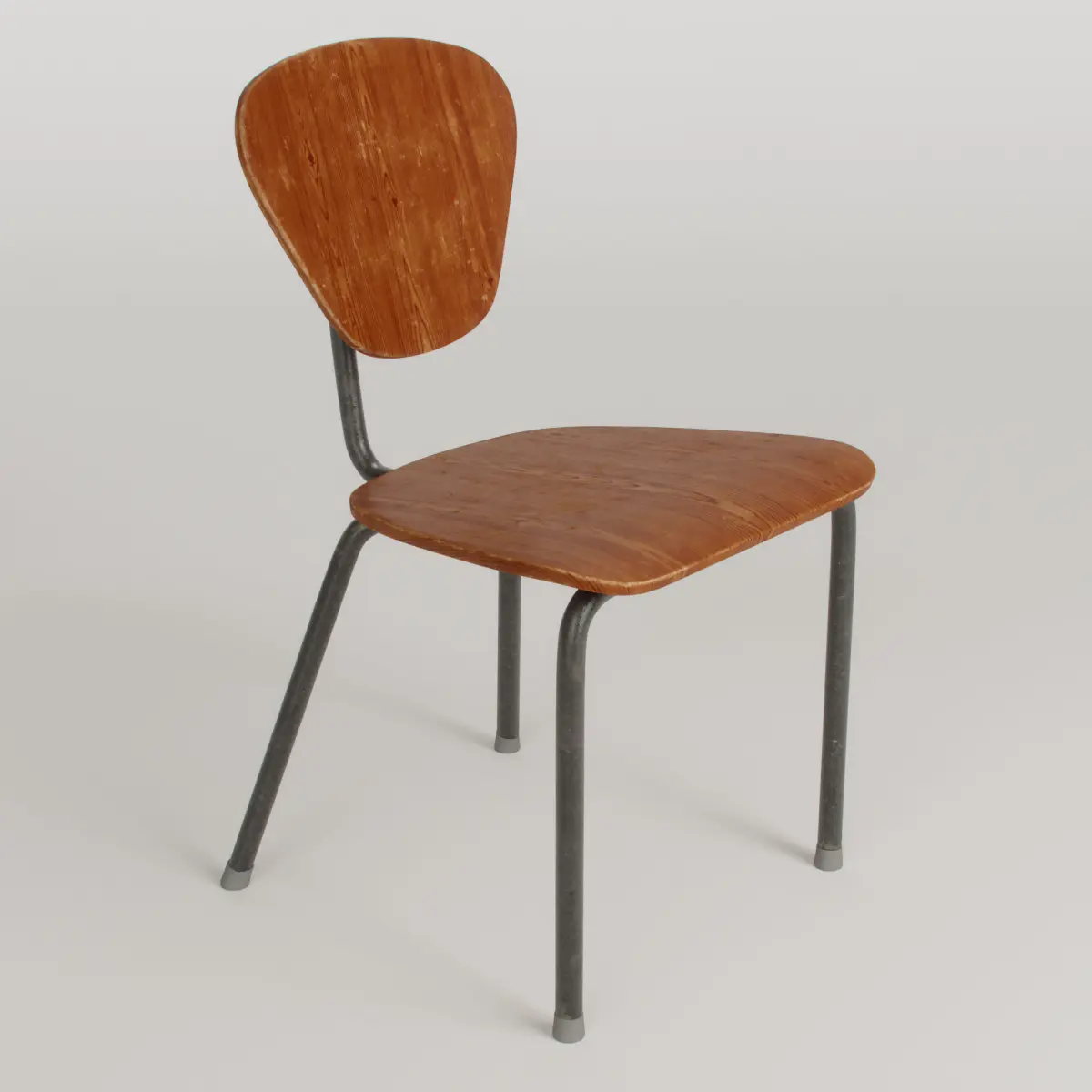 3D Model of a vintage wooden chair with metallic structure.