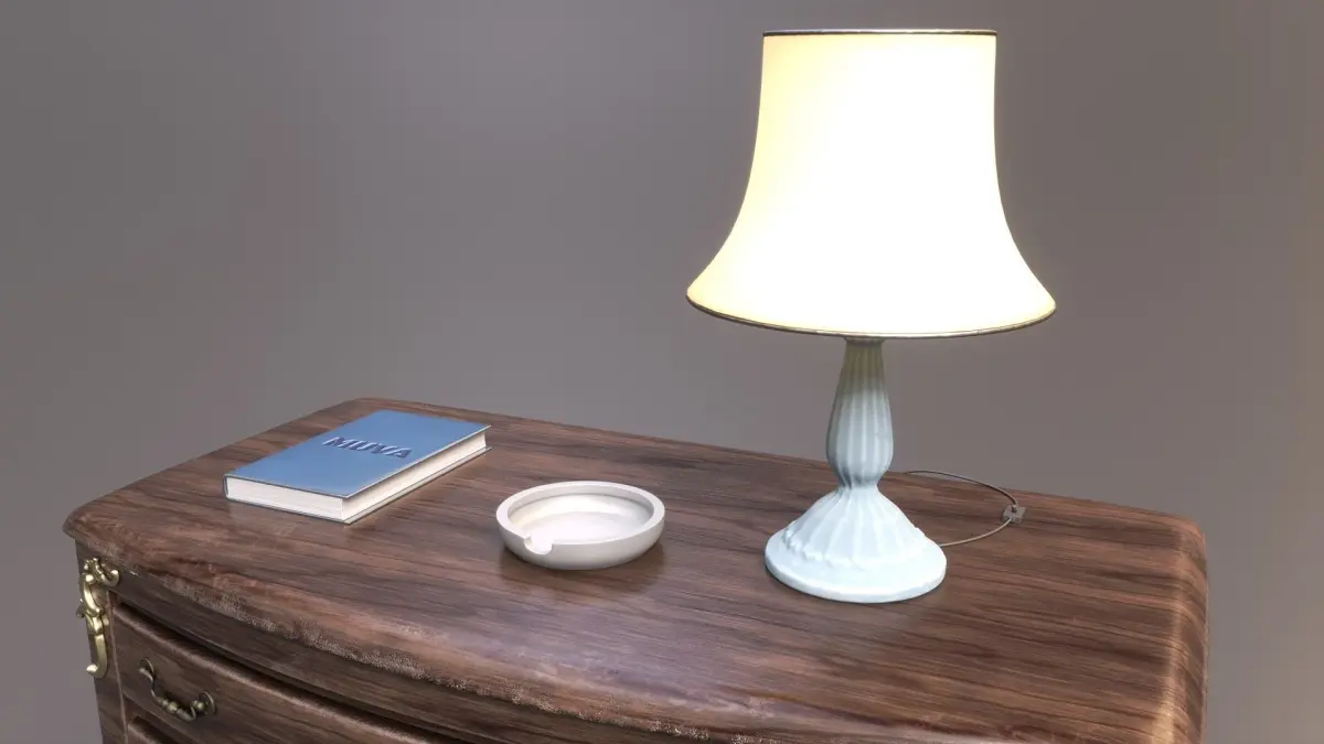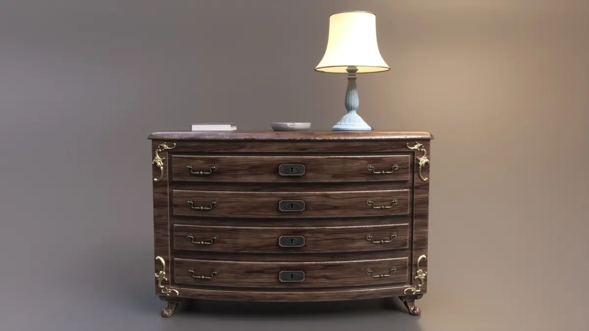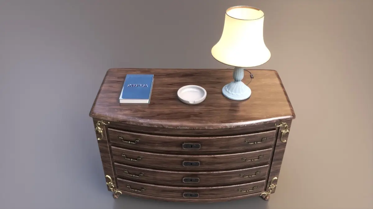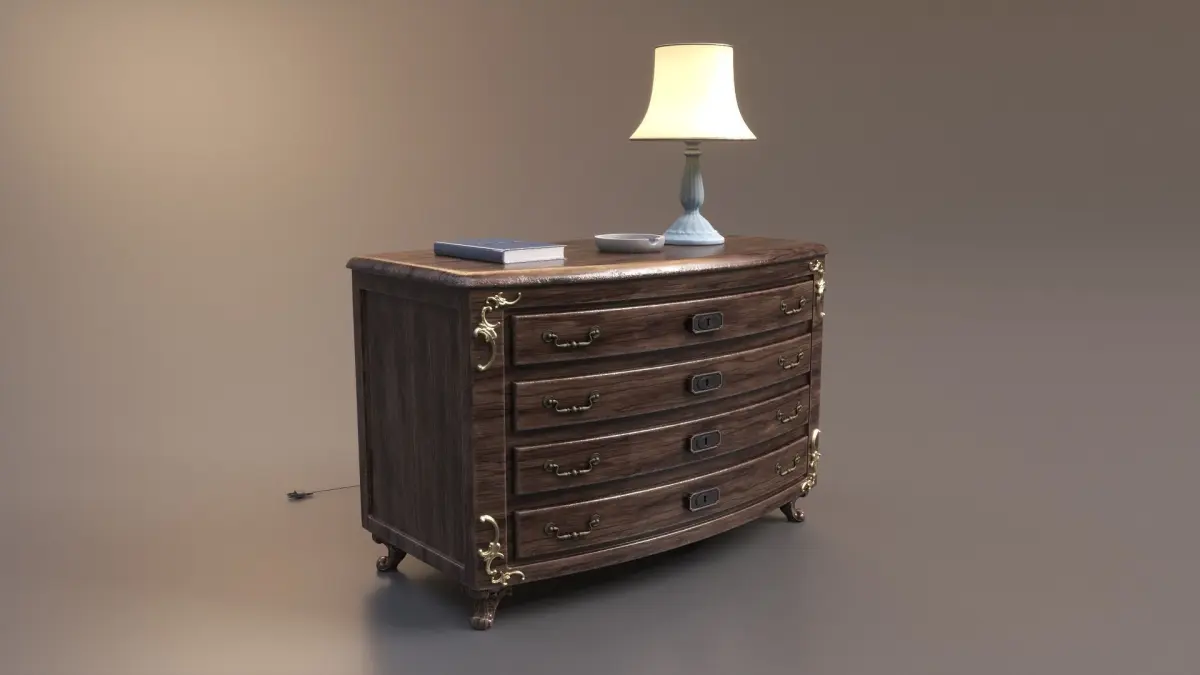 Add a touch of classic elegance to your project with our stunning wood cabinet/drawer, featuring 3 additional objects: an ashtray, a lamp and a book!