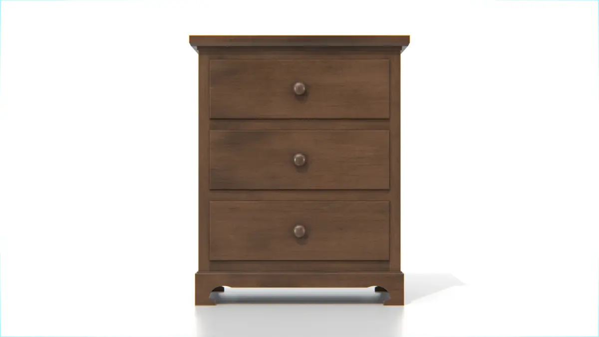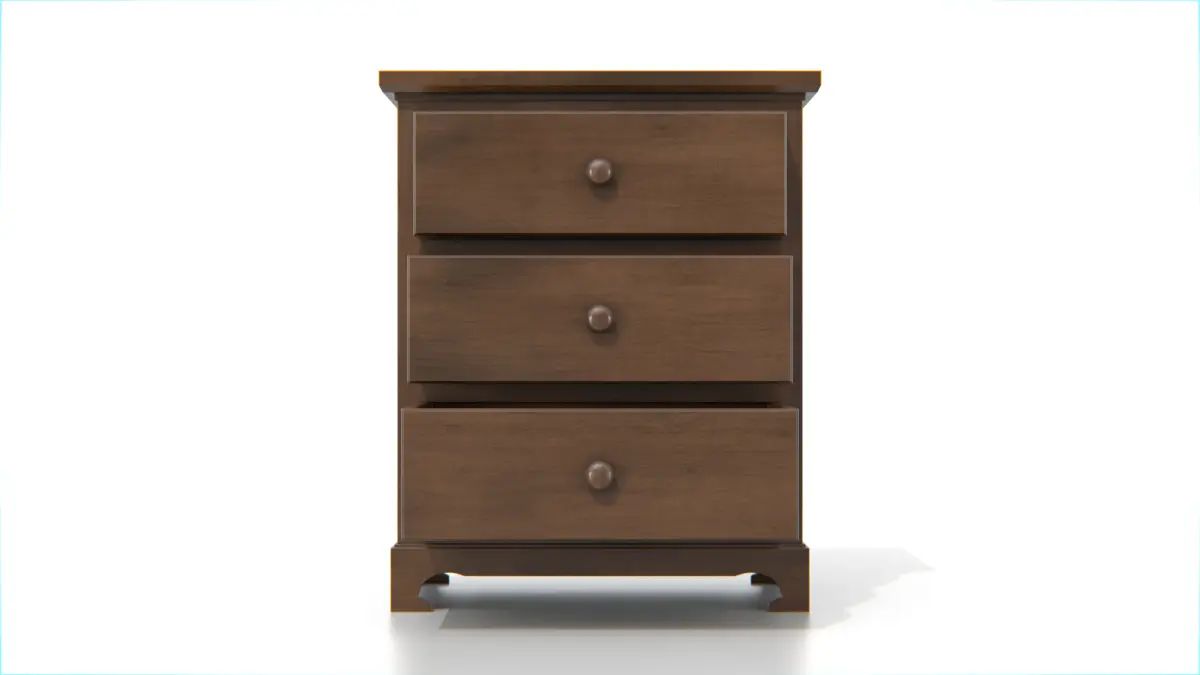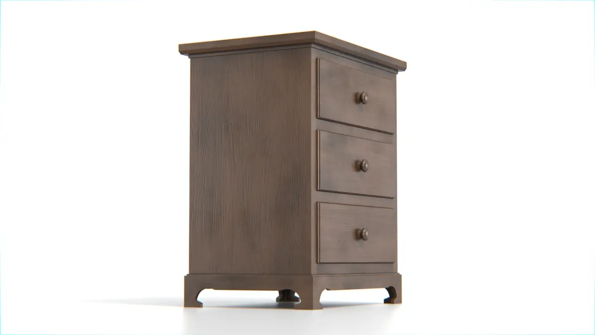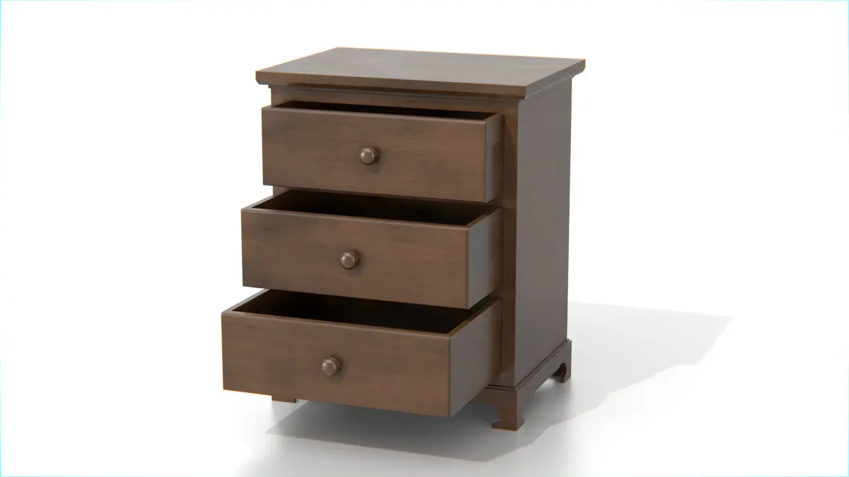 This nightstand features a timeless wooden design with three spacious drawers and rounded wooden knobs, perfect for storing personal items and bedroom essentials. The model is crafted with clean topology and includes subtle base trims and smooth edges for an elegant finish.Ideal for bedroom visualizations, furniture mockups, or interior design scenes that require a warm, classic wooden accent.