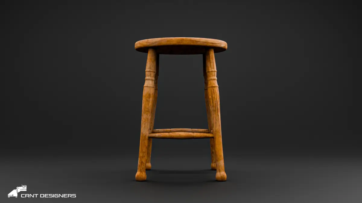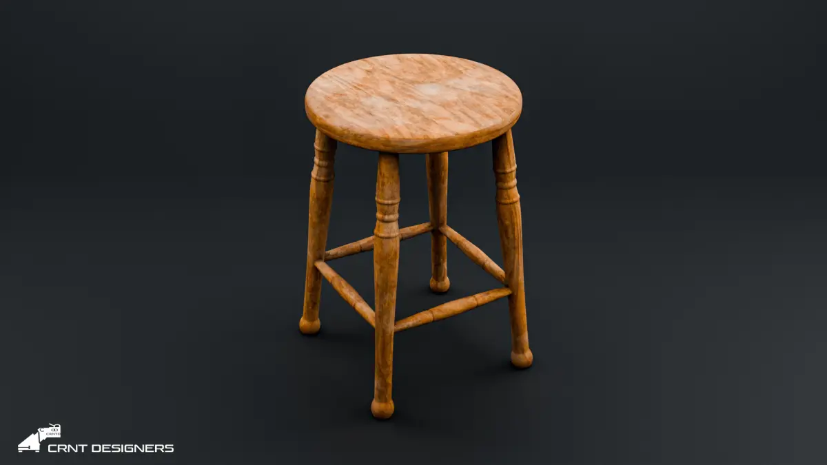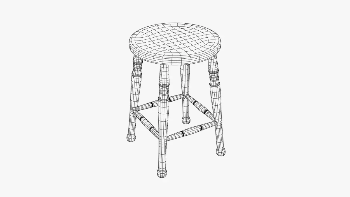Vintage Wooden Stool 3D Model