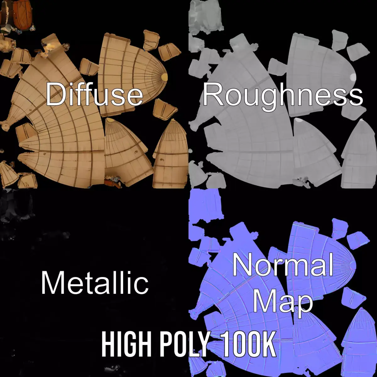 This detailed Vintage Wooden Zeppelin model pack showcases a meticulous replication of early 20th-century airships, crafted from wood materials to give an authentic vintage feel. Perfect for historical recreations, steampunk themes, and fantasy animations, this model adds a touch of nostalgia and grandeur. Each model has 3 levels of detail: low-poly (1000 triangles for mobile), middle-poly (10,000 triangles for environment), and high-poly (100,000 triangles), which allows for the use of this model in production rendering (such as 3ds Max, Maya, Cinema4D, Blender, V-Ray/Corona/Cycles and all others), game engines (Unity and Unreal compatible), and interactive presentations, providing a choice of detail based on the LOD System principle. The model's textures are PBR, Diffuse, NormalMap, and reflection/roughness/metallic, suitable for any modern rendering engine. All models are accurately unwrapped and have no overlapping UV. Textures are 4096x4096 in size. If you enjoy this model, please like and leave a comment!