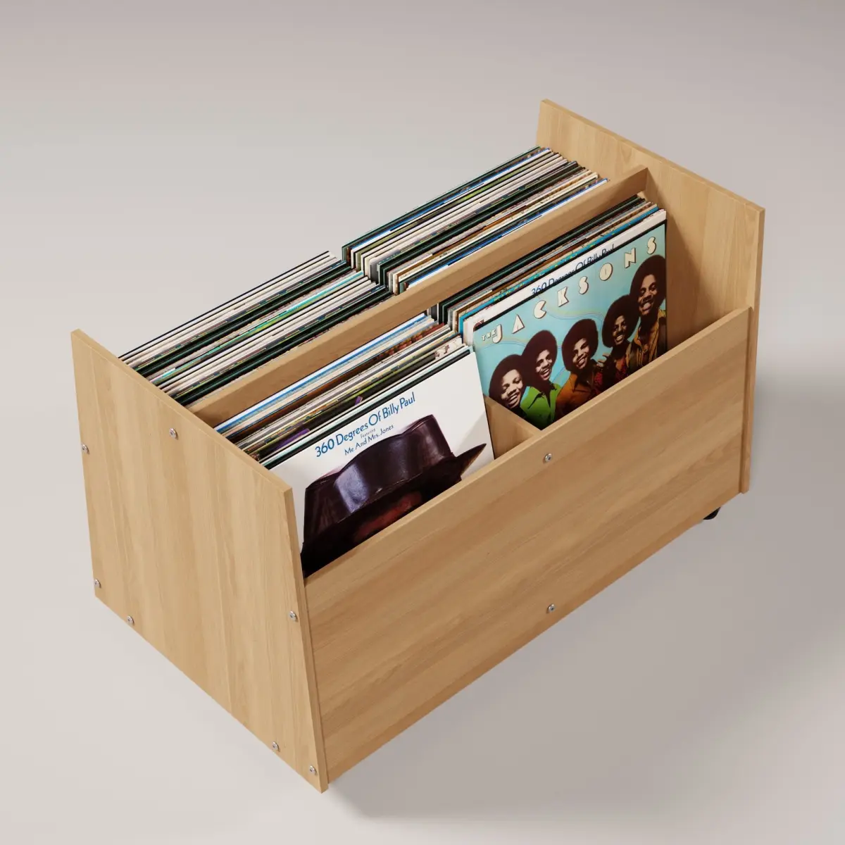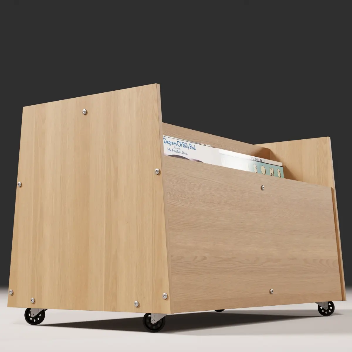 Realistic 3D model of a vinyl LP storages with hundreds of vinyls. The model is suitable for any visual production - broadcast, advertising, design visualization, etc