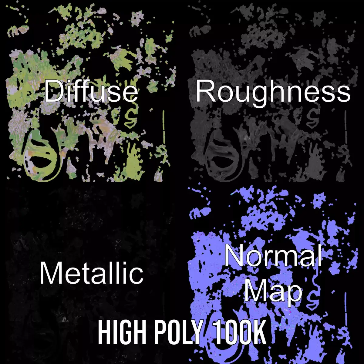 Each model has 3 levels of detail: low-poly (1000 triangles for mobile), middle-poly (10,000 triangles for environment), and high-poly (100,000 triangles), which allows for the use of this model in production rendering (such as 3ds Max, Maya, Cinema4D, Blender, Vray/Corona/Cycles and all other), game engines (Unity and Unreal compatible), and interactive presentations, providing a choice of detail based on the LOD System principle.