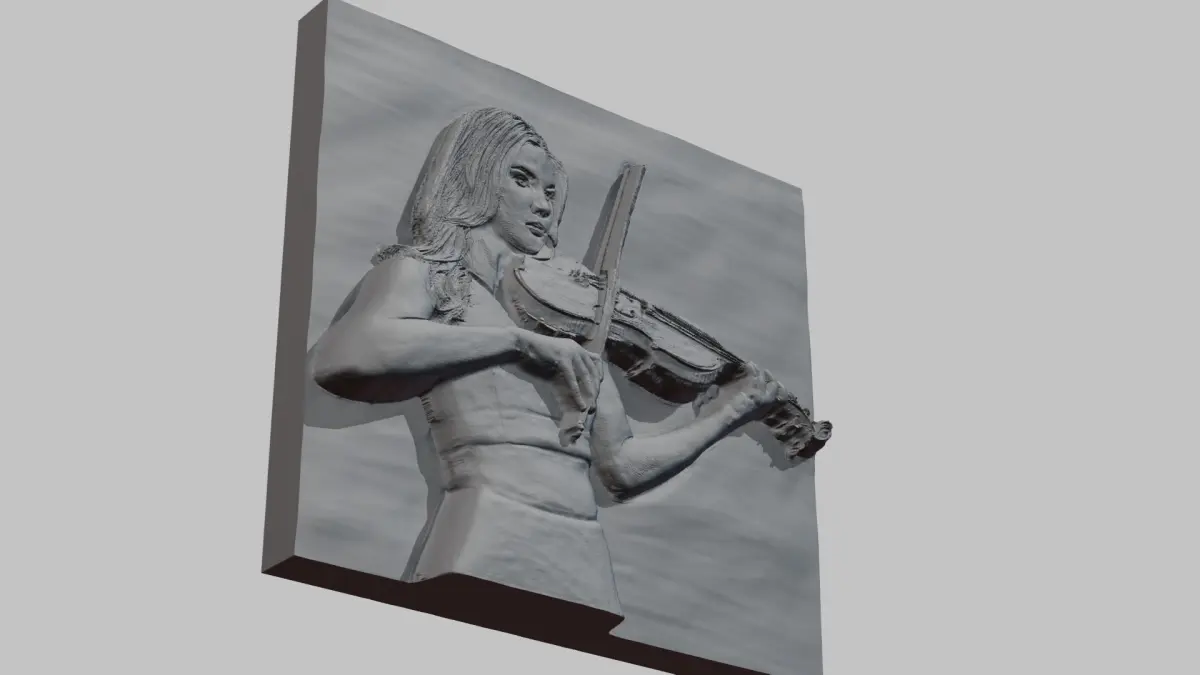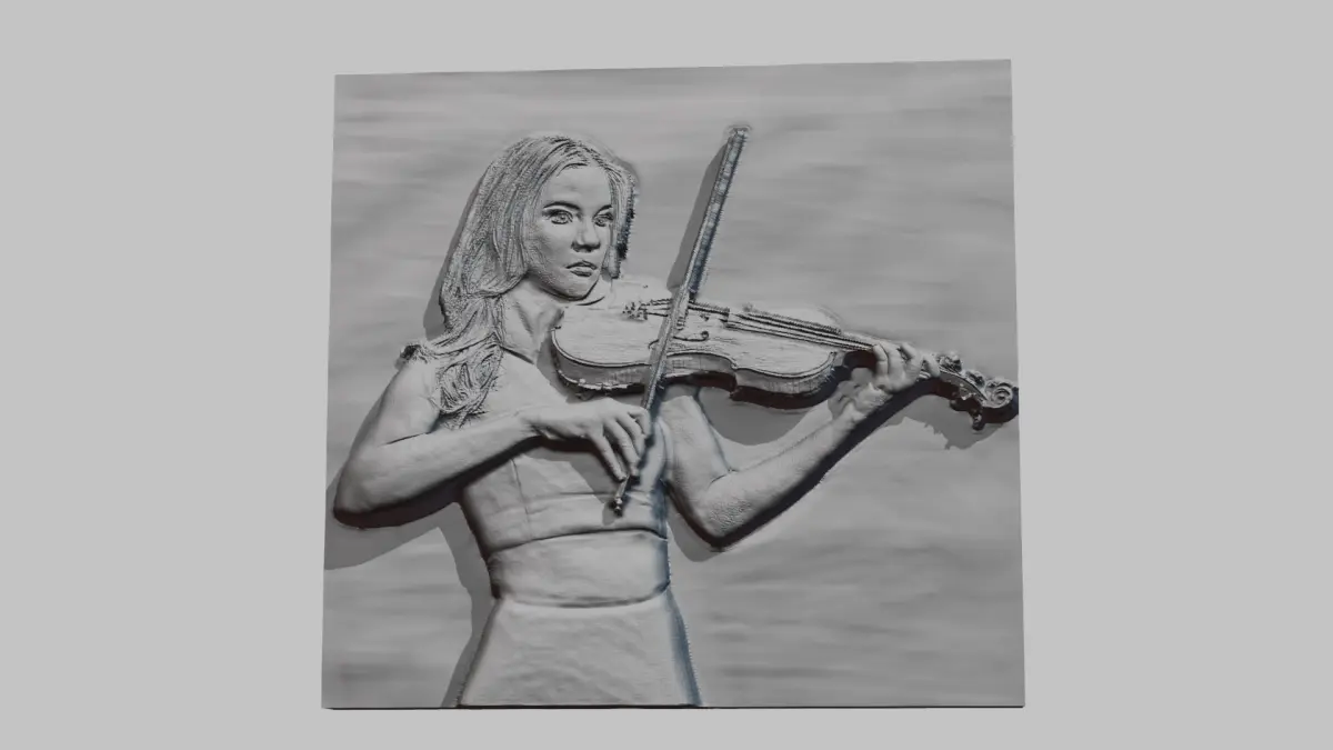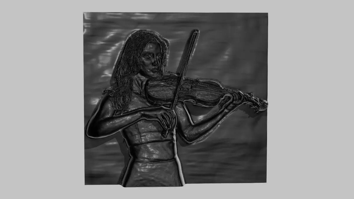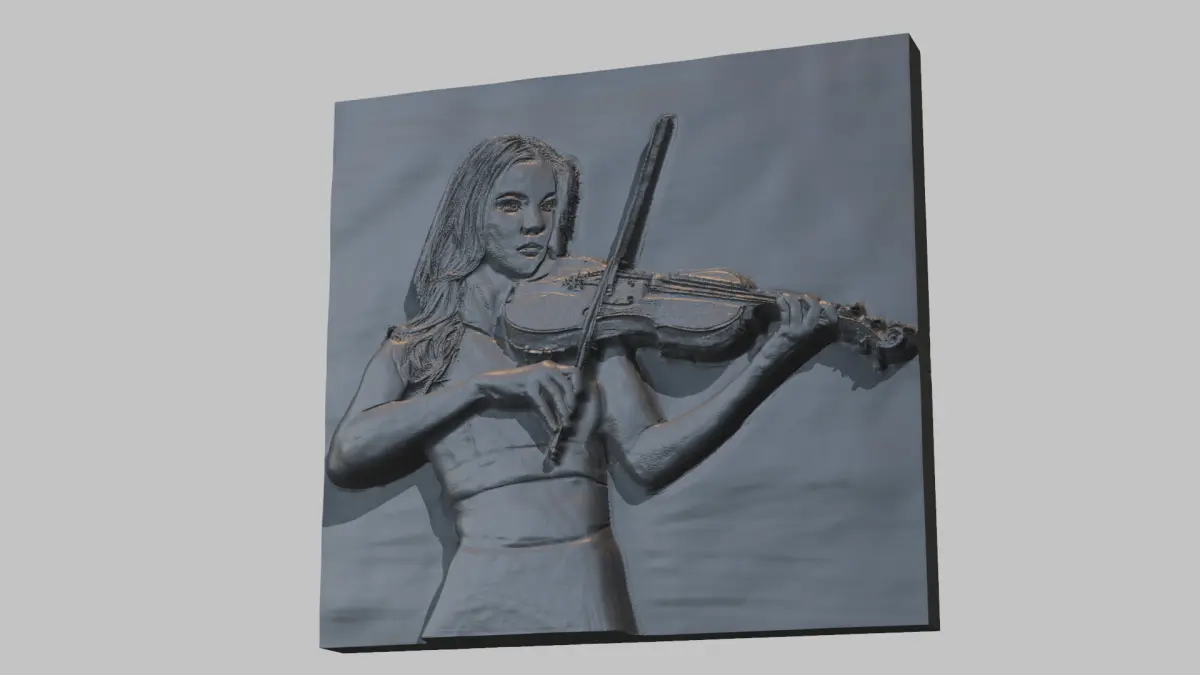 Keywords: Relief Sculpture, 3D Model, ArtCAM, CNC, CNC Router, 3D Printing, Digital Art, Decorative, Wall Decor, Wood Carving, Engraving, Landscape Model, Portrait Sculpture, Violinist , bas relief ,Violinist girl, Violinist lady, Violin, Violin playing, music