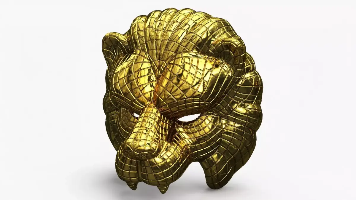 VIP Lion Mask is a 3d model of a majestic lion face mask, crafted with intricate details and a luxurious golden finish that captures the essence of regal strength and beauty.
