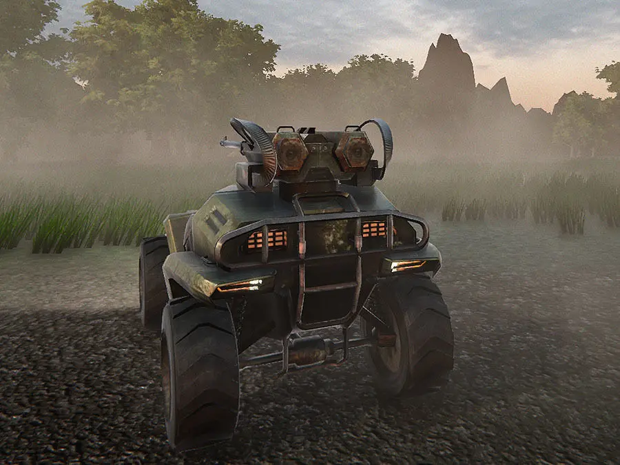 Separate SteerWheel, Wheel, doors and weapon. 2 vehicle versions, with different guns. Guns can be rotated independently from car body.