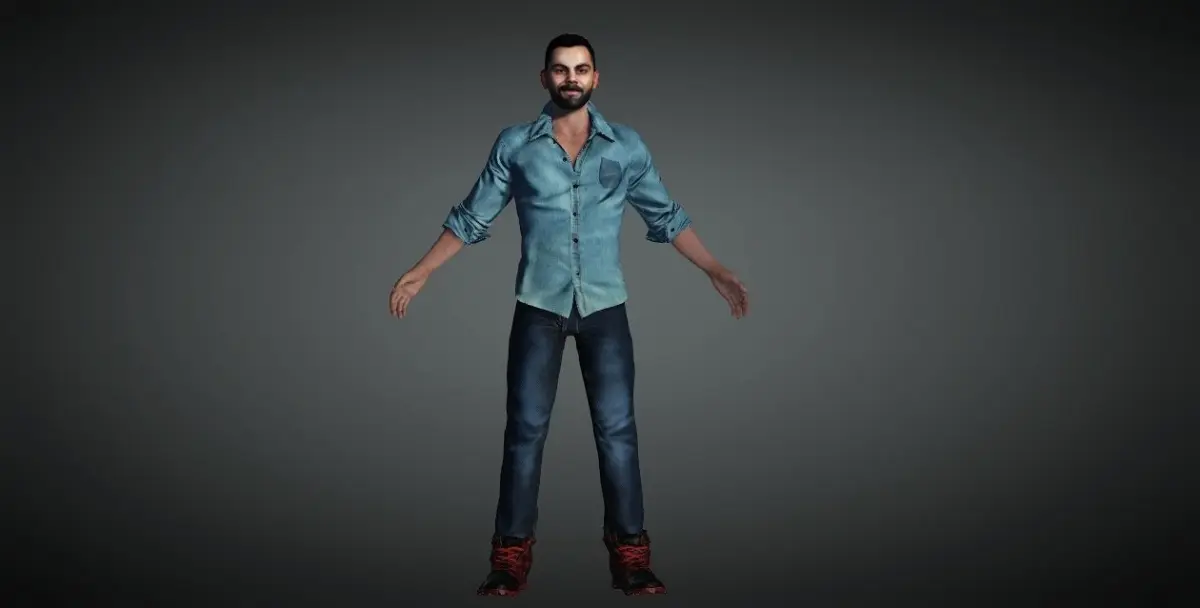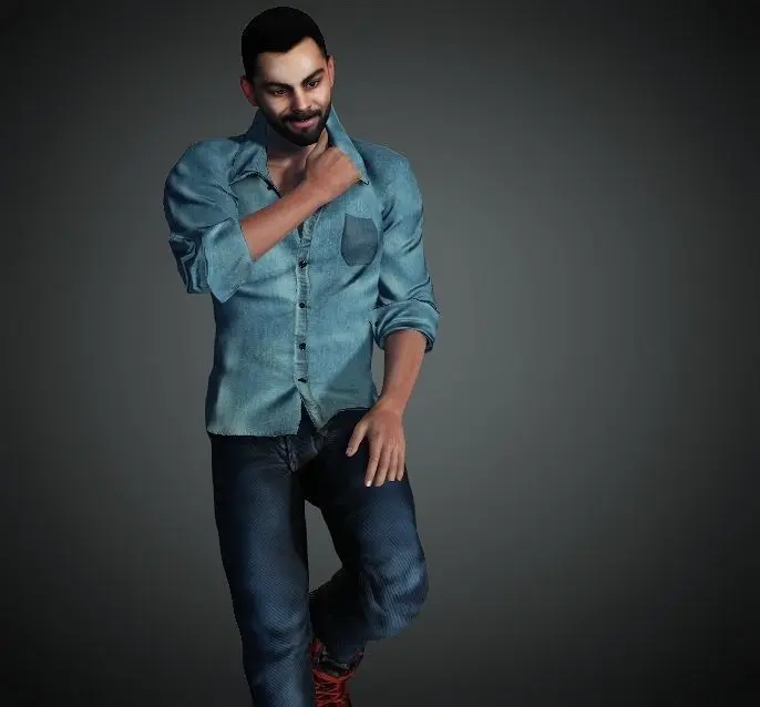 High-quality 3D model of Virat Kohli, the cricketing legend.