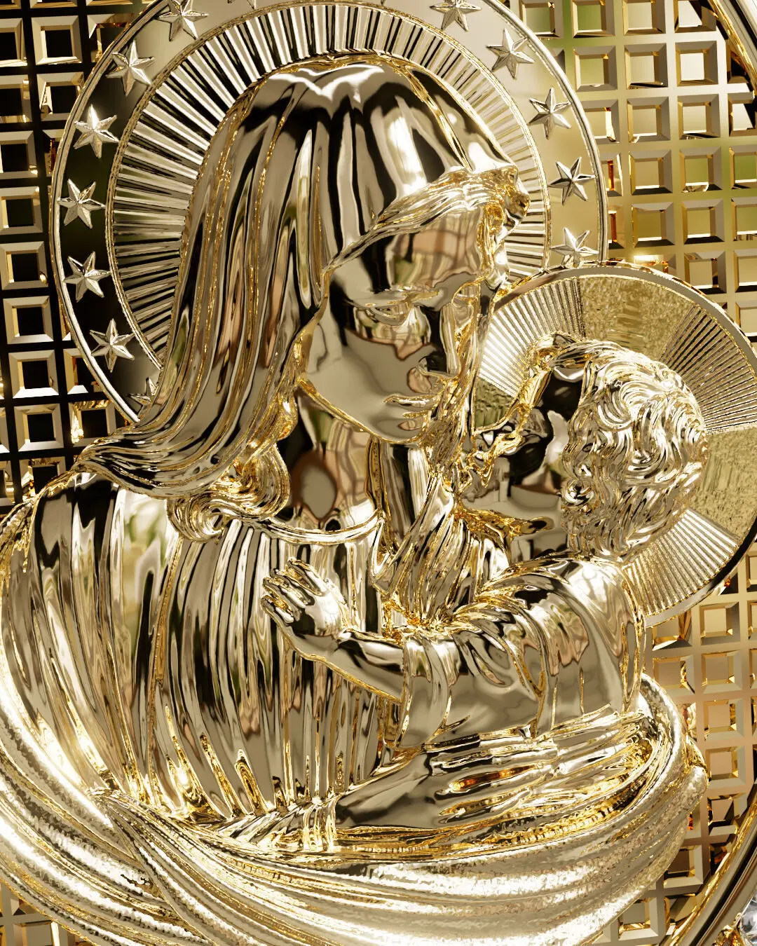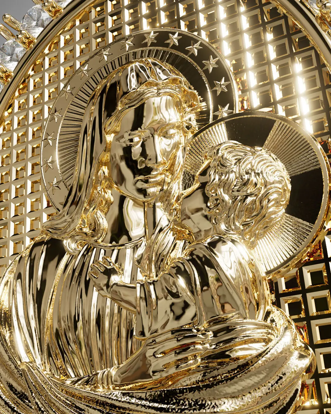 Virgen de fatima con piedras de 1.75mm