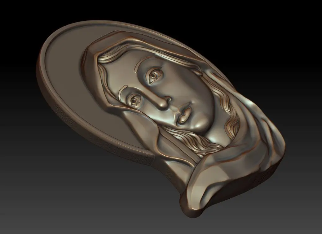Virgin Mary Mother of God 3d relief for cnc-sistems and 3d printing. Can be used in the production of souvenirs, furniture, jewelry. Files in stl format, for import to artcam, rhinoceros, 3ds max, etc. You can scale the model to any size you need.