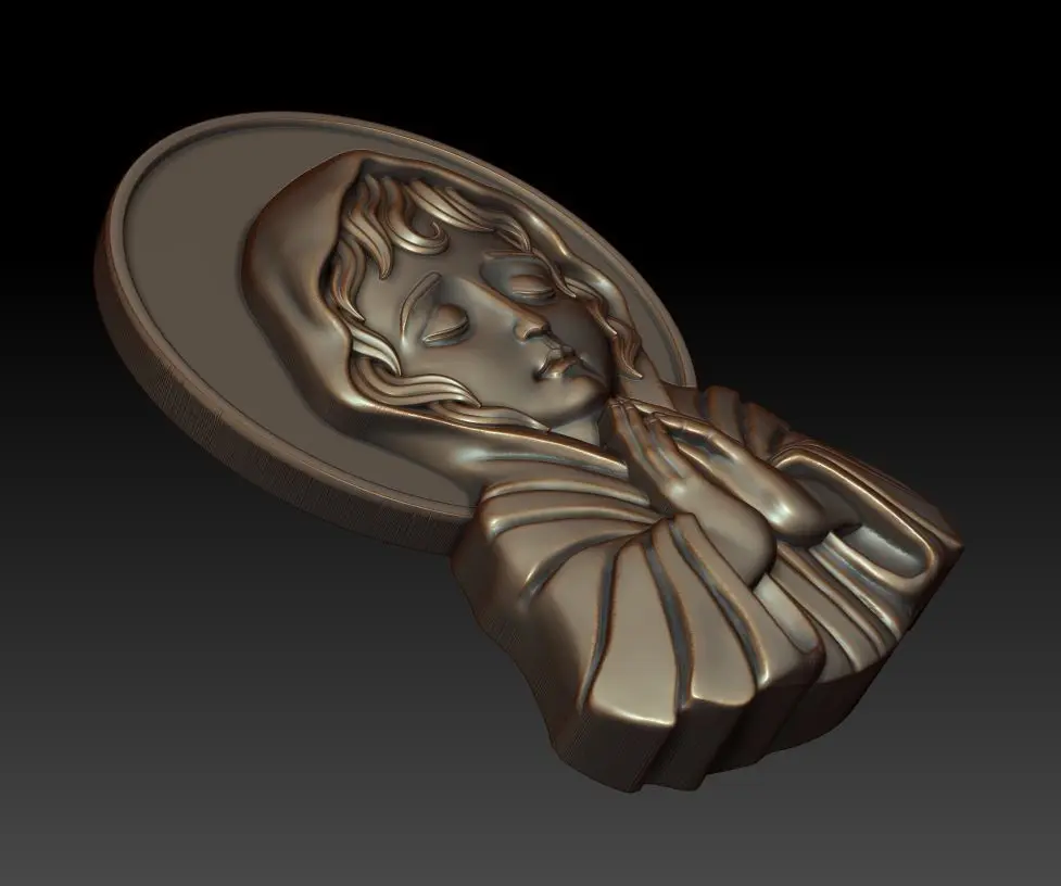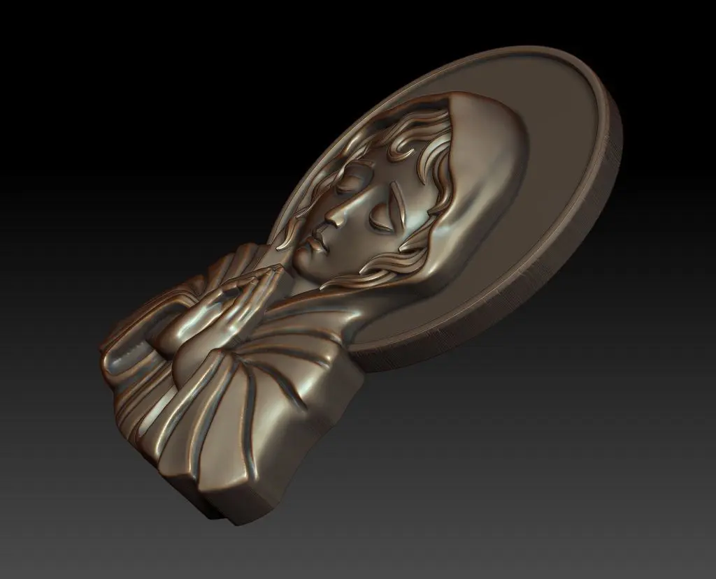 Virgin Mary Mother of God 3d relief for cnc-sistems and 3d printing. Can be used in the production of souvenirs, furniture, jewelry. Files in stl format, for import to artcam, rhinoceros, 3ds max, etc. You can scale the model to any size you need.