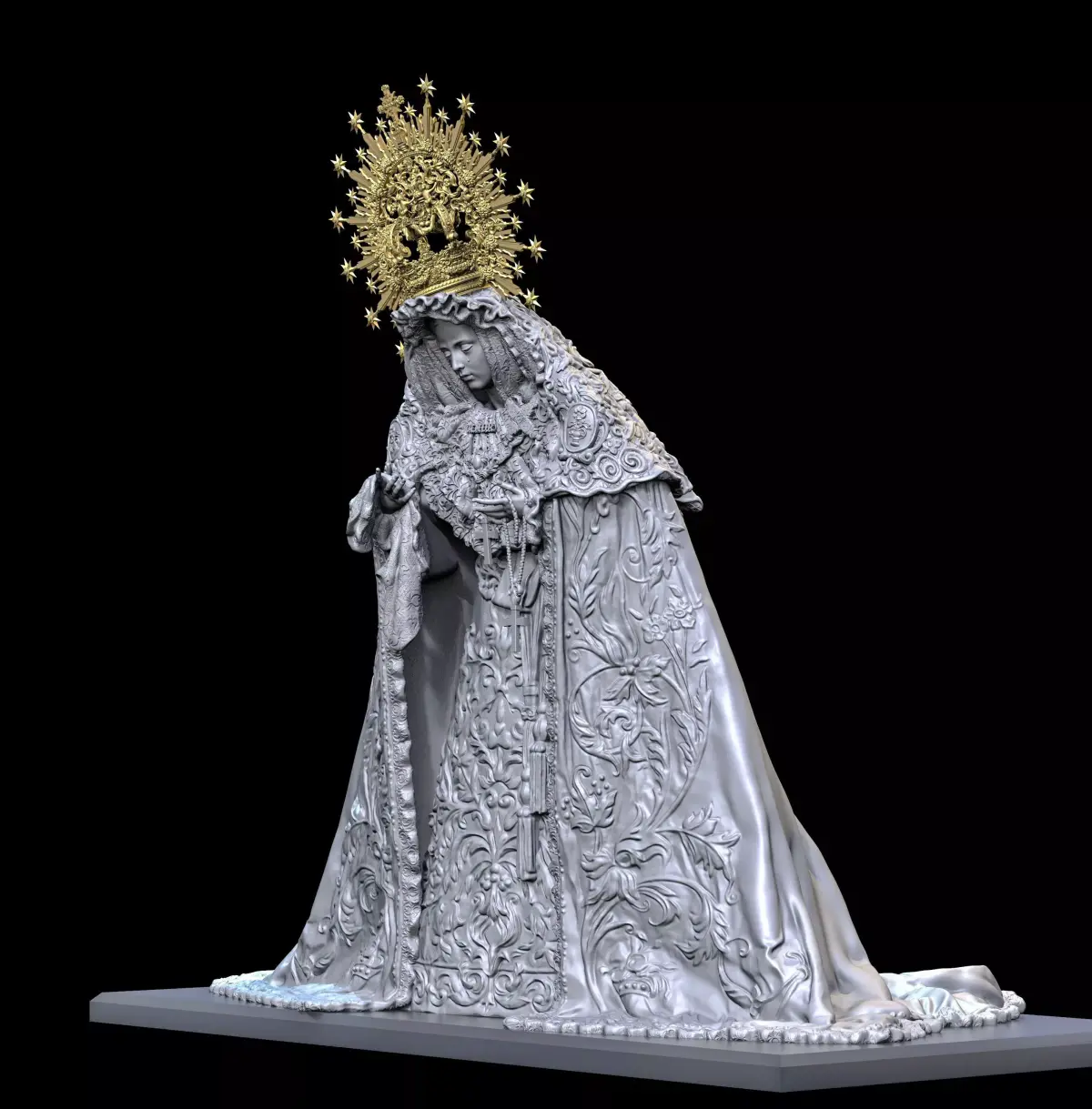 Virgin of Amor – High-Detail 3D Sculpture Model (500 mm)I am pleased to present my new 3D sculpture, inspired by one of the traditional Spanish representations of the Virgin Mary. This image is known for the delicate brooch on the chest with the inscription AMOR, which became the central emotional motif of the composition.