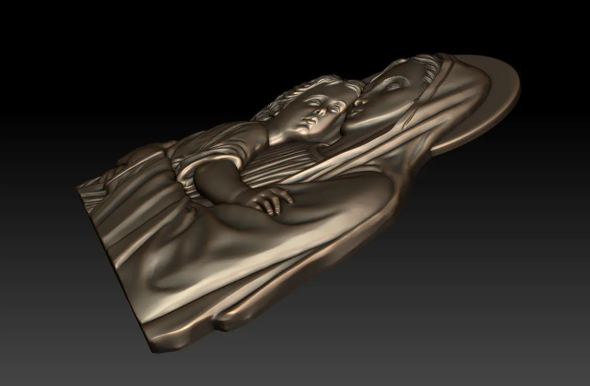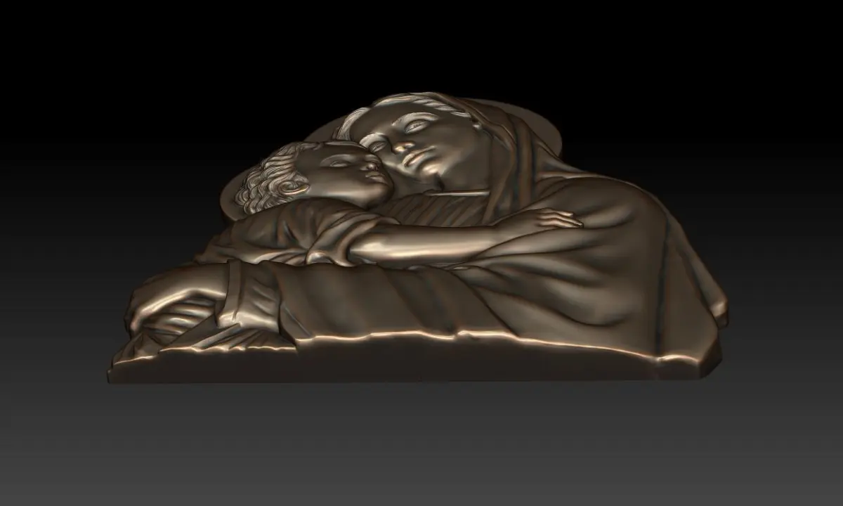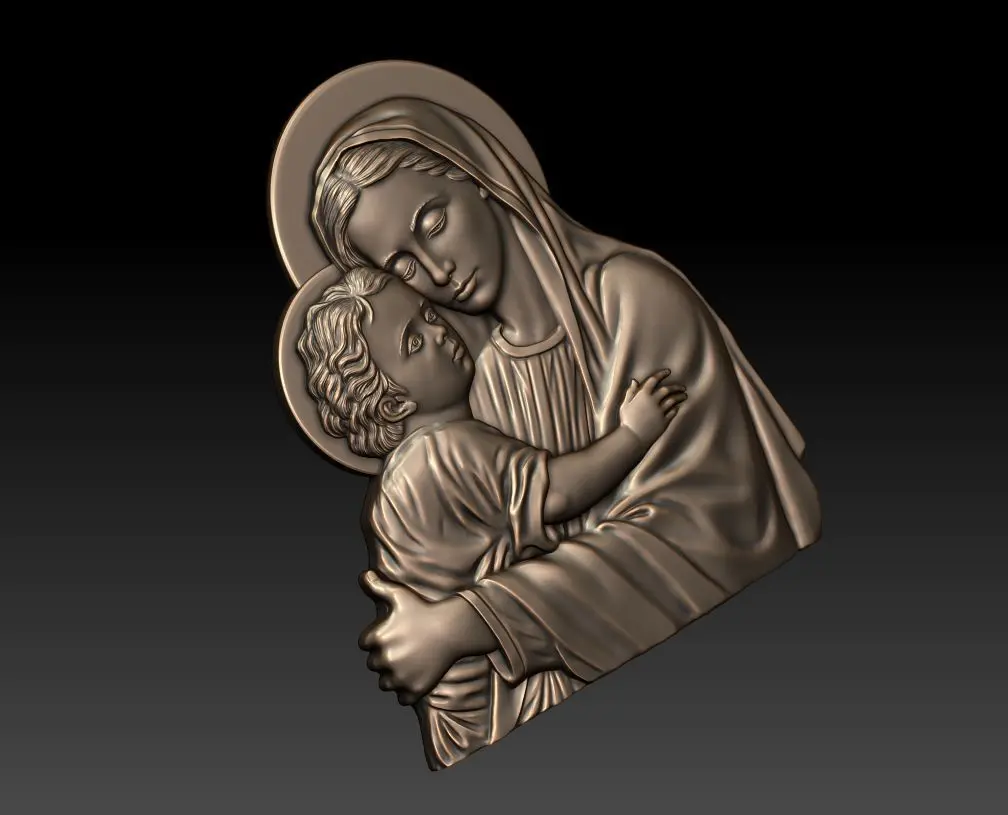 Virgin Mary and Child. 3d relief for cnc-sistems and 3d printing. Can be used in the production of souvenirs, furniture, jewelry. Files in stl format, for import to artcam, rhinoceros, 3ds max, etc. You can scale the model to any size you need.