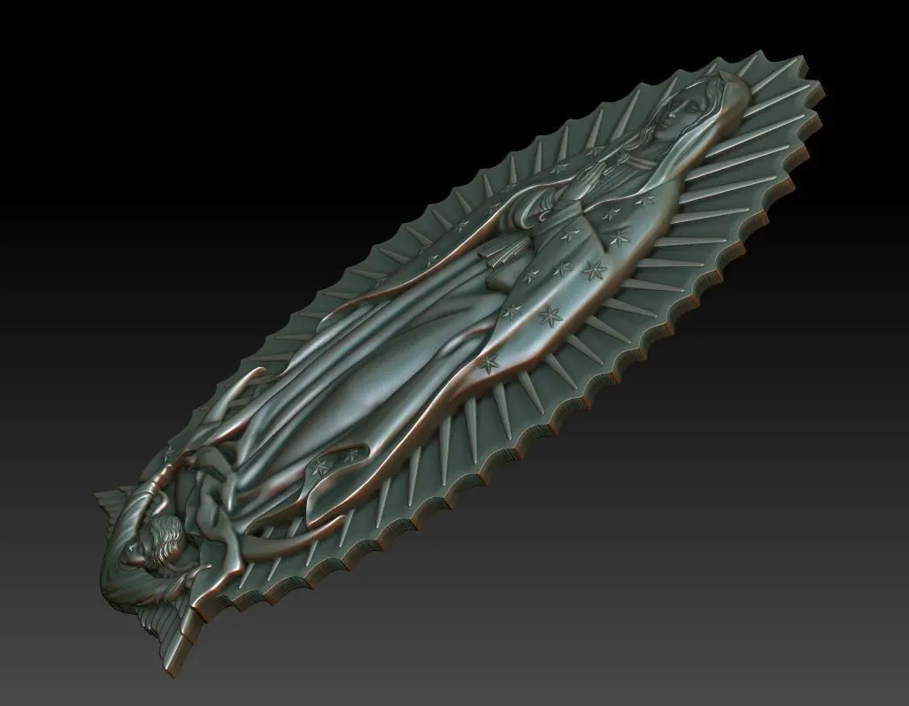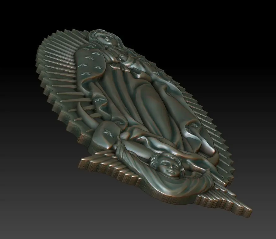 3d model Virgin of Guadalupe(Our Lady of Guadalupe, Virgen de Guadalupe) . For milling on CNC machines, or 3d printing. Can be used in the production of souvenirs, furniture, jewelry. Files in stl format, for import to artcam, rhinoceros, 3ds max, etc. You can scale the model to any size you need.