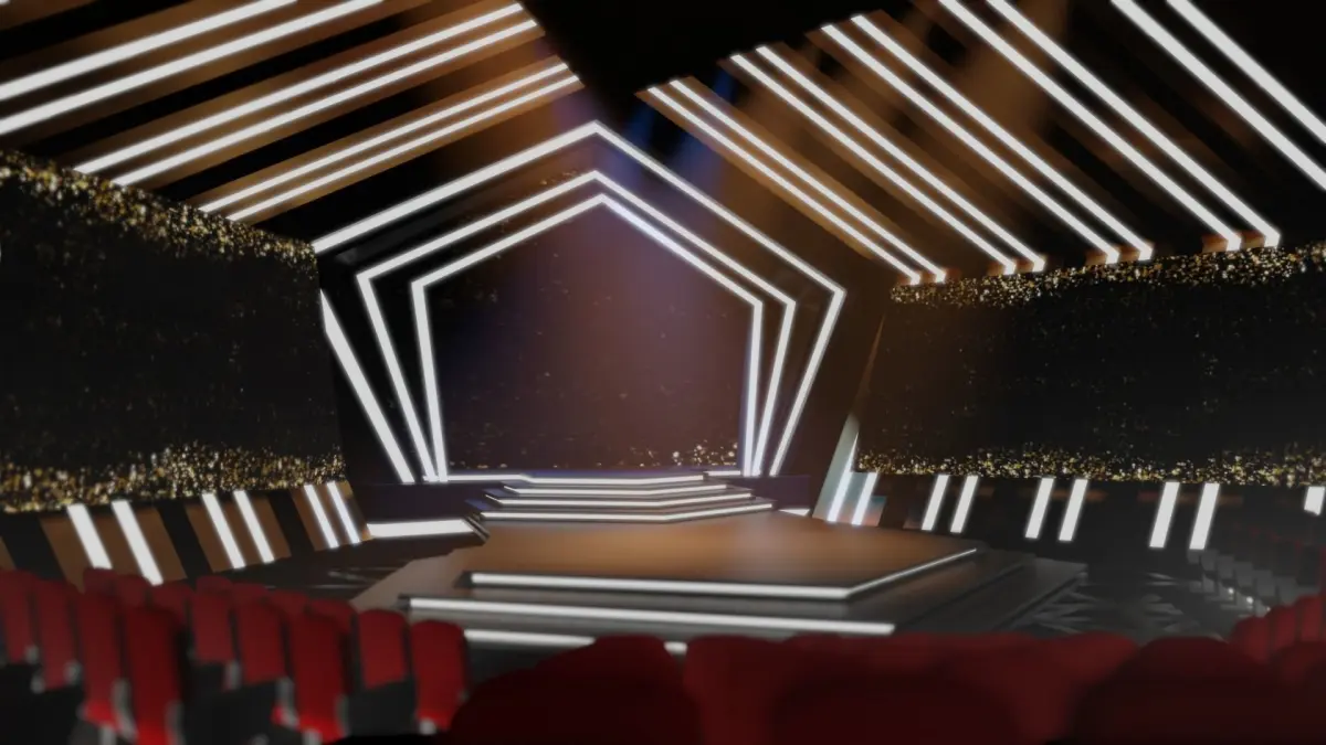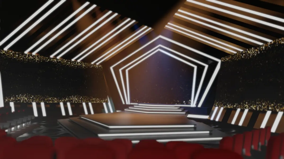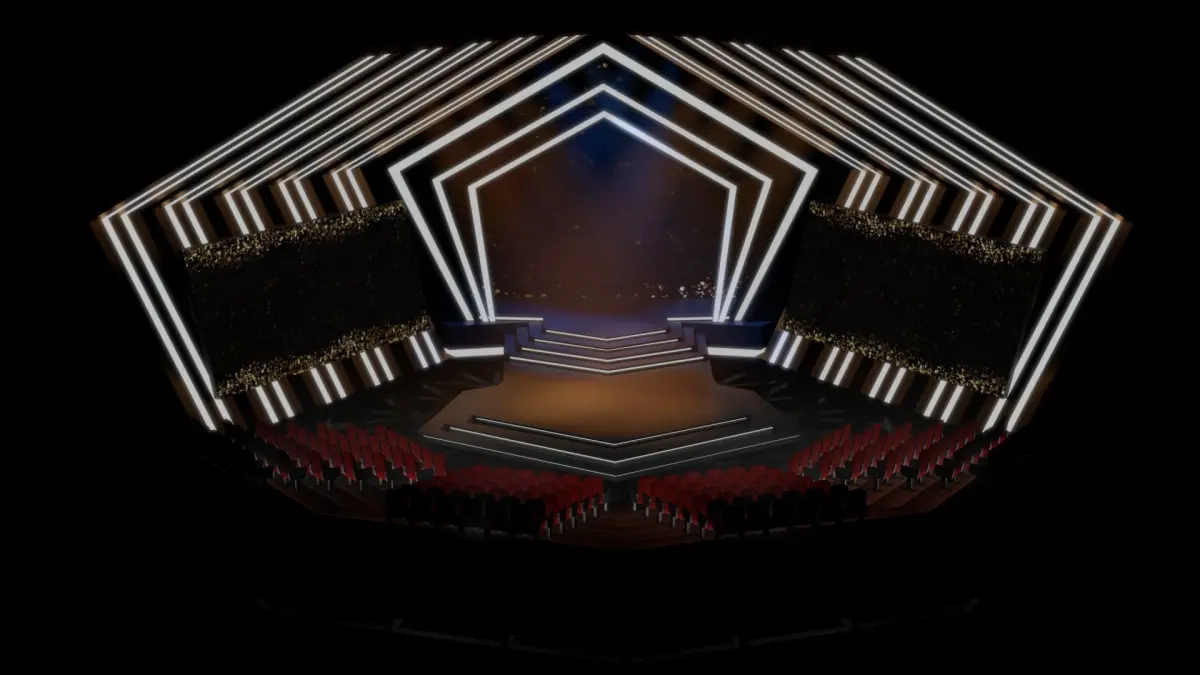 This is a virtual modern stage with seats that can be used for award events, concerts, or just a performance.
