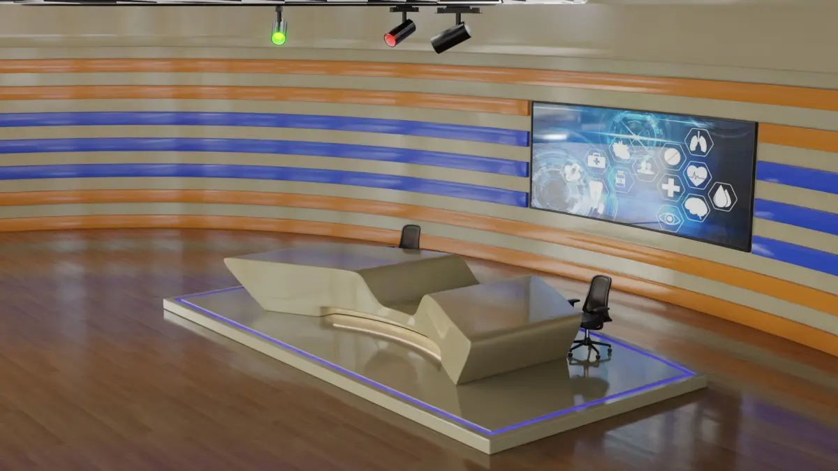 Photorealistic, high-quality 3D model of 'Virtual TV Studio' Created with Blender 3.6 The model is suitable for Ultra HD rendering and ready for close up shots.The model rendering quality shown on product previews.