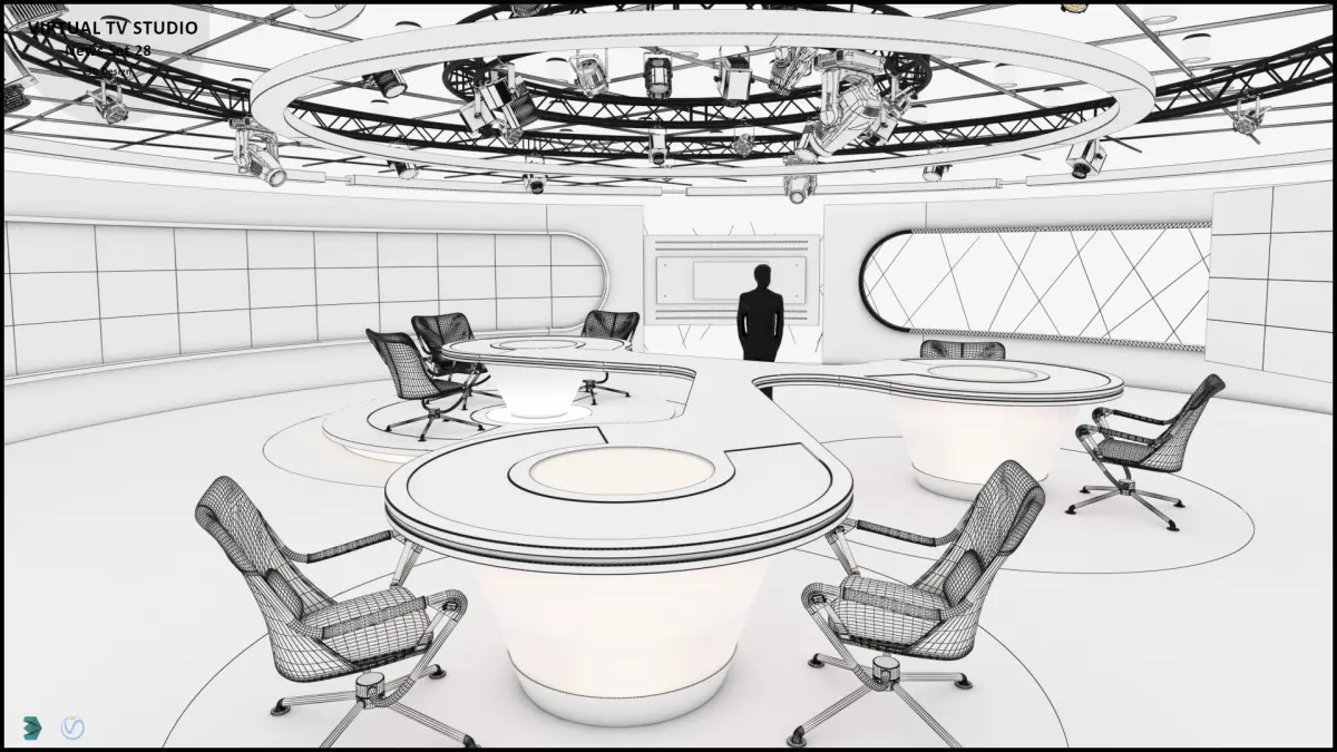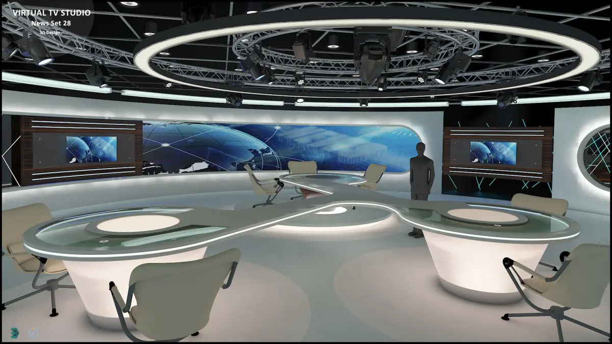 - Virtual set studio for color images. (8K-4K-UHD 3d Rendering at different camera angles) With a simple setup, you can turn a few square meters of space into a magnificent virtual set.