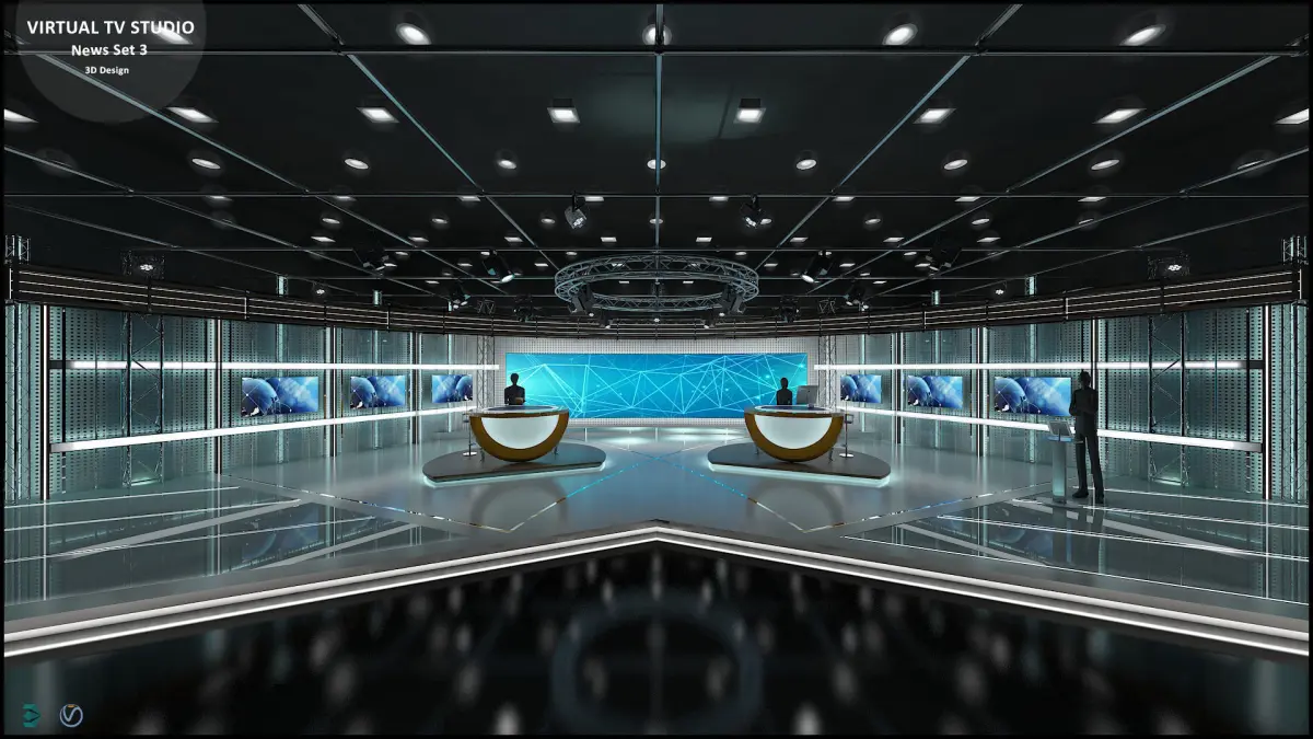 - Virtual set studio for color images. (4K-UHD 3d Rendering at different camera angles) With a simple setup, you can turn a few square meters of space into a magnificent virtual set.