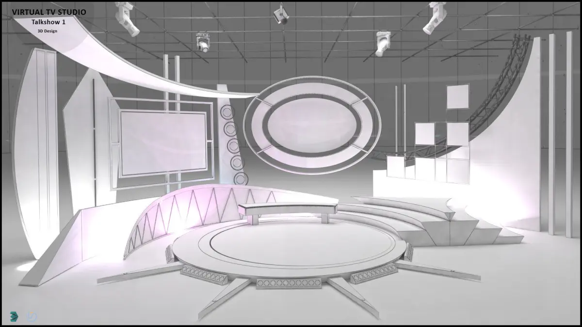 - Virtual set studio for color images. (8K-4K-UHD 3d Rendering at different camera angles) With a simple setup, you can turn a few square meters of space into a magnificent virtual set.