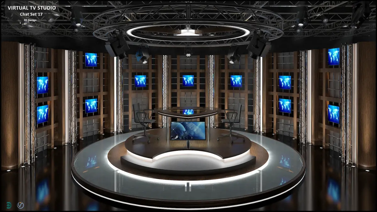 Virtual sets that are required for any modern show for TV channels. 2 PCS DESIGN.You can customize our designs as you wish and use them in your own project.