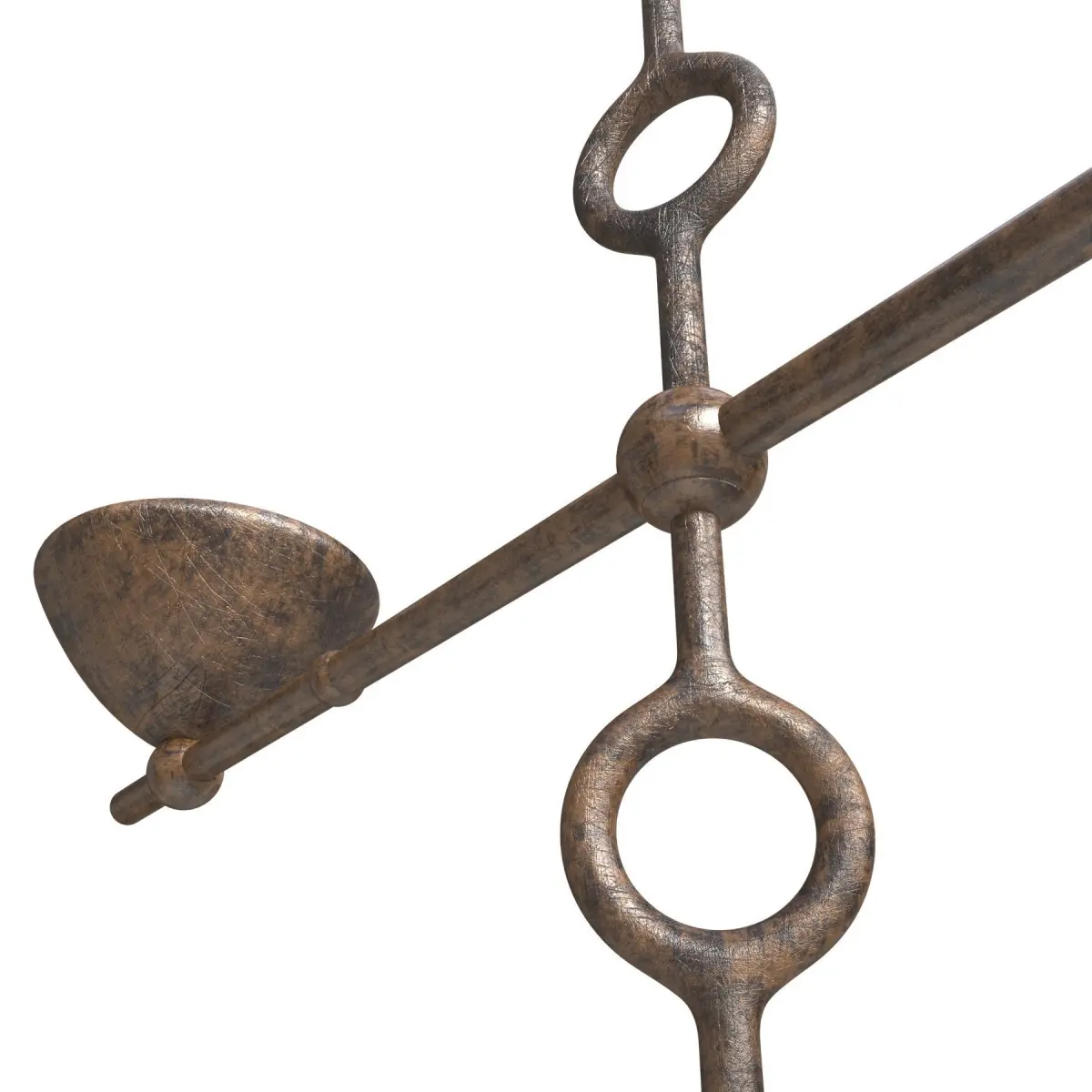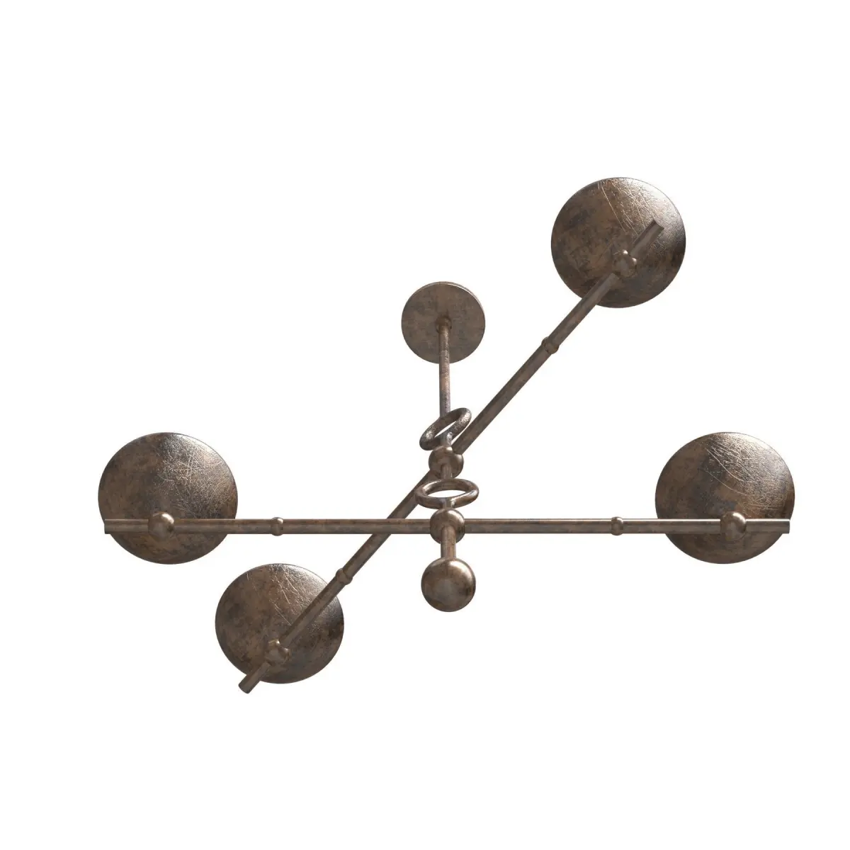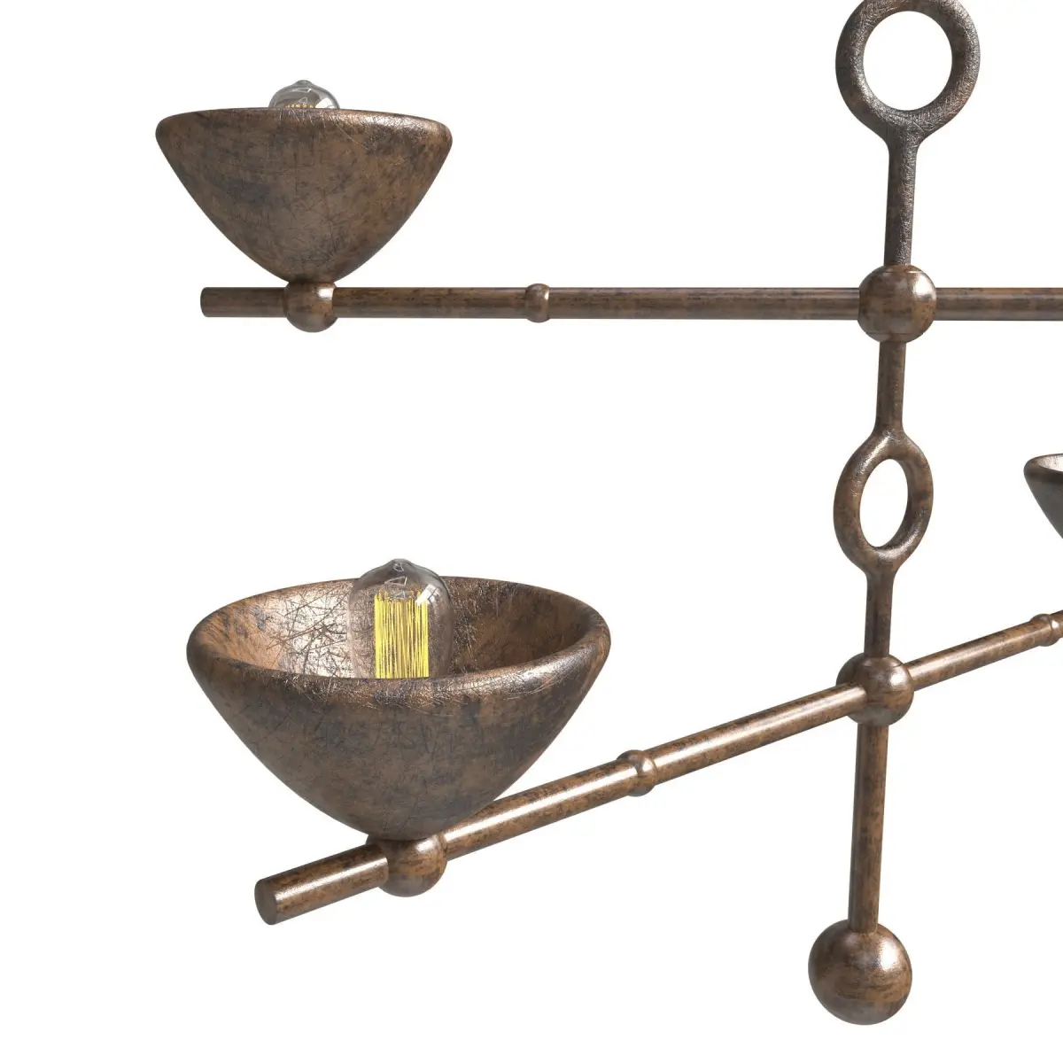 Inspired by the work of renowned Italian artist Alberto Giacometti, the Vishal family makes an impact with its sculptural framework and heavily patinated finish. The shades resemble dishes filled with light while the spindly arms are accented by ornamental circular motifs. The allover Black Patina Gold finish continues the art historical reference, adding an organic, hand-applied, and weathered effect. Vishal is available as a 1-light sconce and 4 or 6-light chandelier.