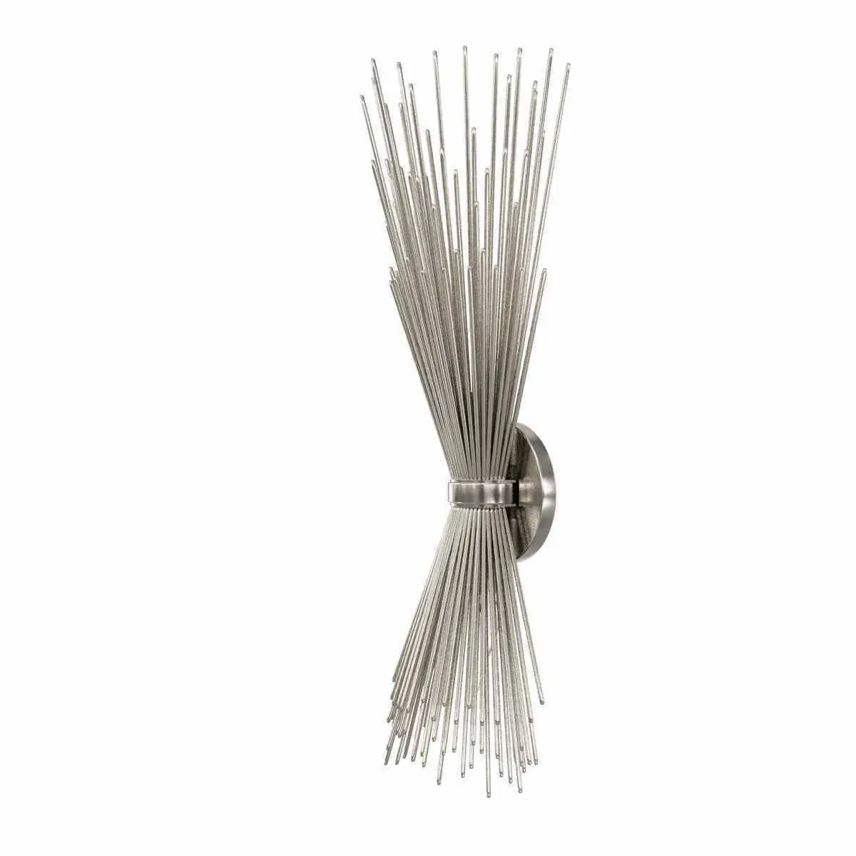 Brand InformationBrand: Visual ComfortCollection: Kelly Wearstler StradaSKU: KW2070BSLUPC: 756808955096Dimensions and WeightWidth: 8.00 in.Height: 19.50 in.Extension/Depth: 5.00 in.Backplate/Canopy Width: 4.00 in.Other SpecificationsAdditional DetailsBackplate Shape: RoundMounting: HardwireJ-Box Size: 4" StandardDesign InformationCategory: Wall SconcesFinish: Burnished Silver LeafDesigner: Kelly WearstlerPrimary Bulb(s): 2 x 60 watts Candelabra B