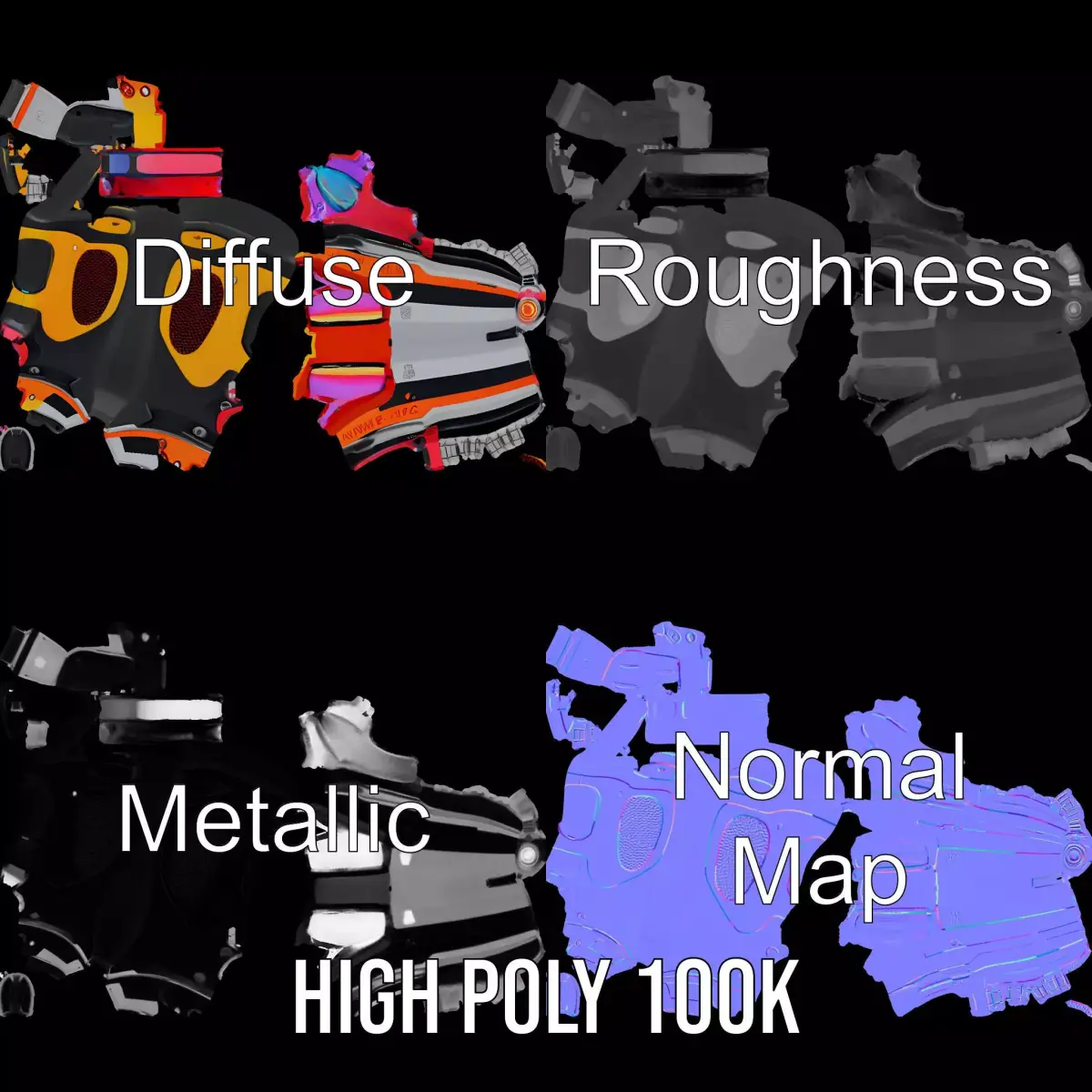 The model's textures are PBR, Diffuse, NormalMap, and reflection/roughness/metallic, suitable for any modern rendering engine. All models are accurately unwrapped with no overlapping UVs, and all textures are 4096*4096 in size.