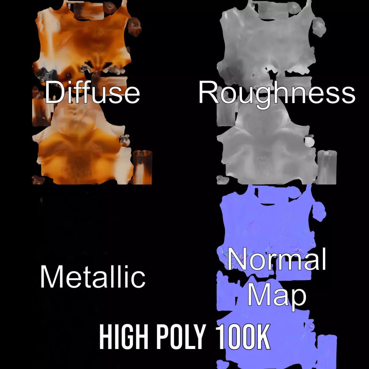 The textures are PBR, Diffuse, NormalMap, and reflection/roughness/metallic, suitable for any modern rendering engine. All models are accurately unwrapped and have no overlapping UVs, with textures at a resolution of 4096*4096.