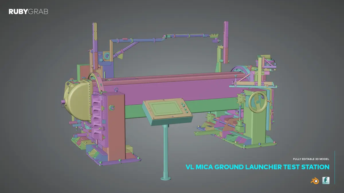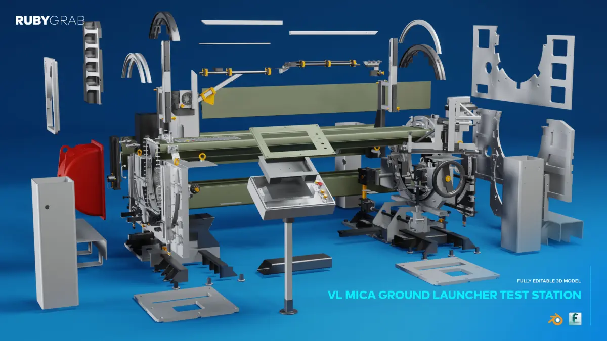This is a highly detailed 3D model of a VL MICA Ground Launcher Test Station, used for training and diagnostics of the French MBDA VL MICA short-to-medium range air defense system.