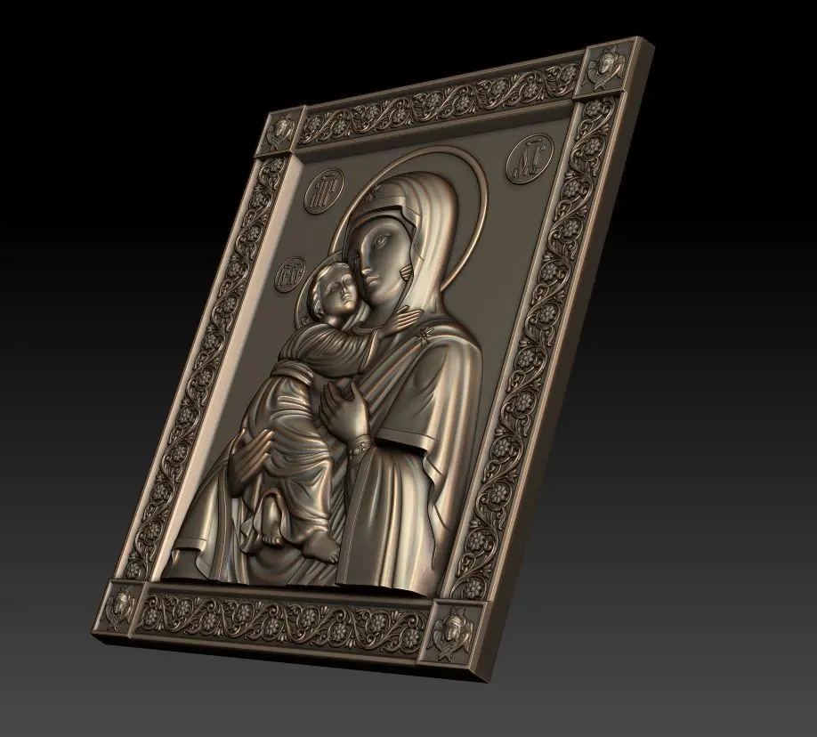 3d model Orthodox icon Vladimir Icon of the Mother of God(Theotokos of Vladimir, Icon of the Mother of God of Vladimir) . For milling on CNC machines. This model is ONLY for cnc, it is NOT for 3d printing. Can be used in the production of souvenirs, furniture, jewelry. Files in stl format, for import to artcam, rhinoceros, 3ds max, etc. You can scale the model to any size you need.