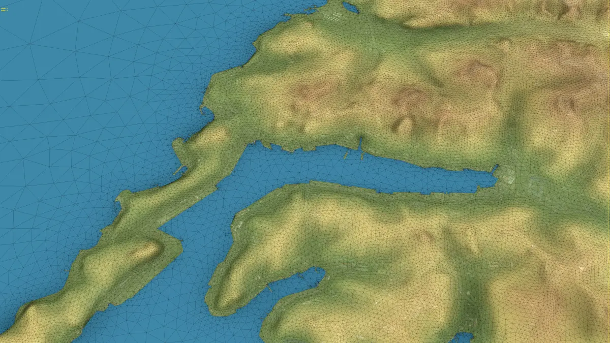 - Optimized Triangular Mesh — Separate land surface and water bodies